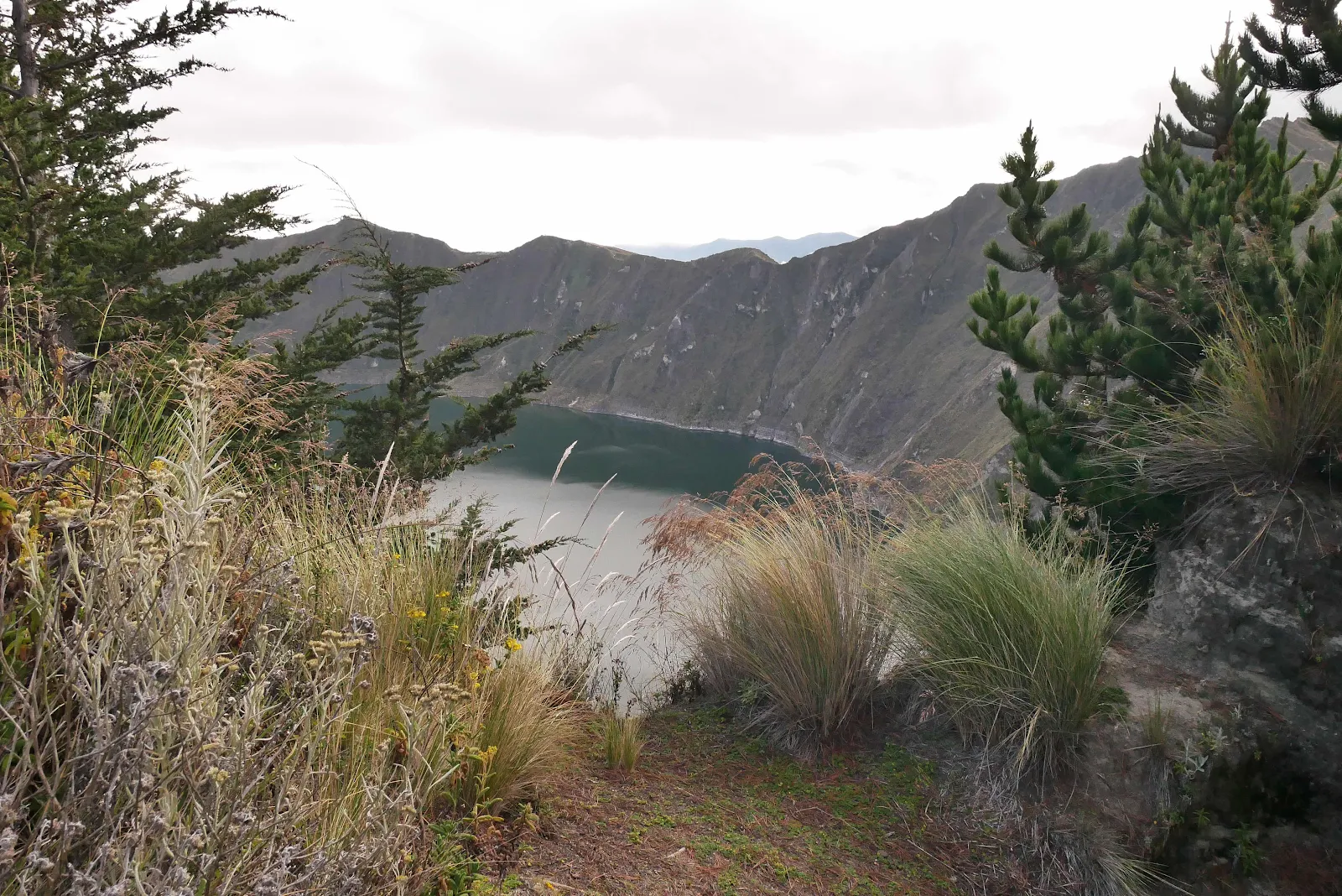Sunday morning I got up early, before seven and put on my Mexican poncho to fend off the 40 degree damp morning air and walked Rusty to the rim of Quilotoa Lake, a crater filled with water.