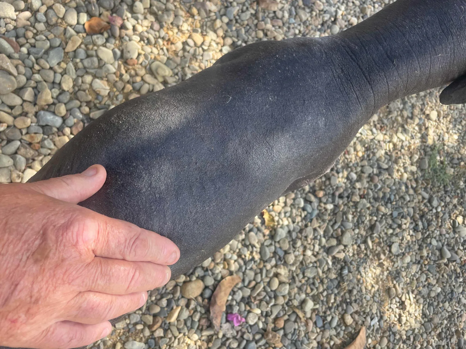 It’s weird to the touch that dog, hot dry skin with just few stray bristles here and there. It looks scorched but he’s so sweet and I’m always sneaking him treats.
