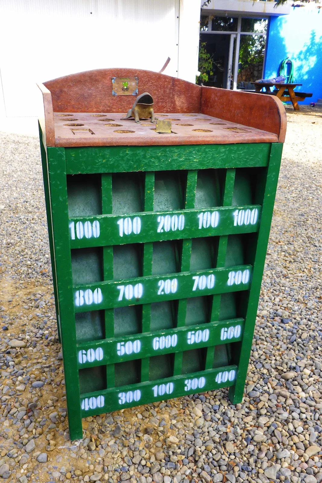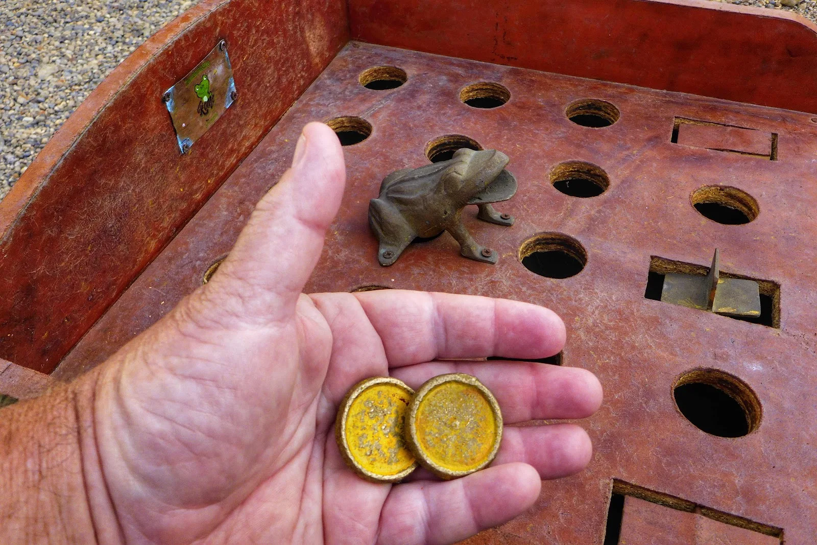 It’s not complicated wherein you toss a heavy metal token at the stand and get it in a hole to render points. 12 tokens to a turn and Melba kept score.