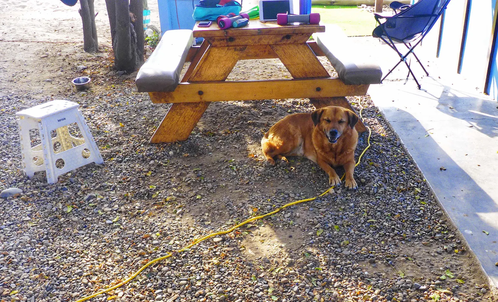 Rusty caught me petting him yesterday afternoon, much barking and gnashing of teeth. There is a line in the gravel now and this side is Rusty’s space; no trespassing.