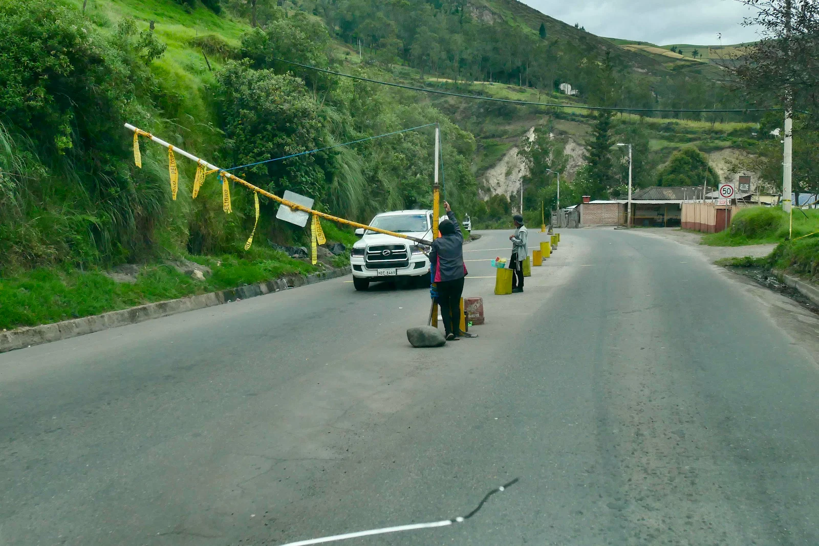And then we met a checkpoint. The car in front only had a bill and they spent minutes organizing his change. I had a dollar coin ready and that indeed was the toll as it is at all official toll booths. This lot did not look official but they had a barrier and the locals paid to pass.