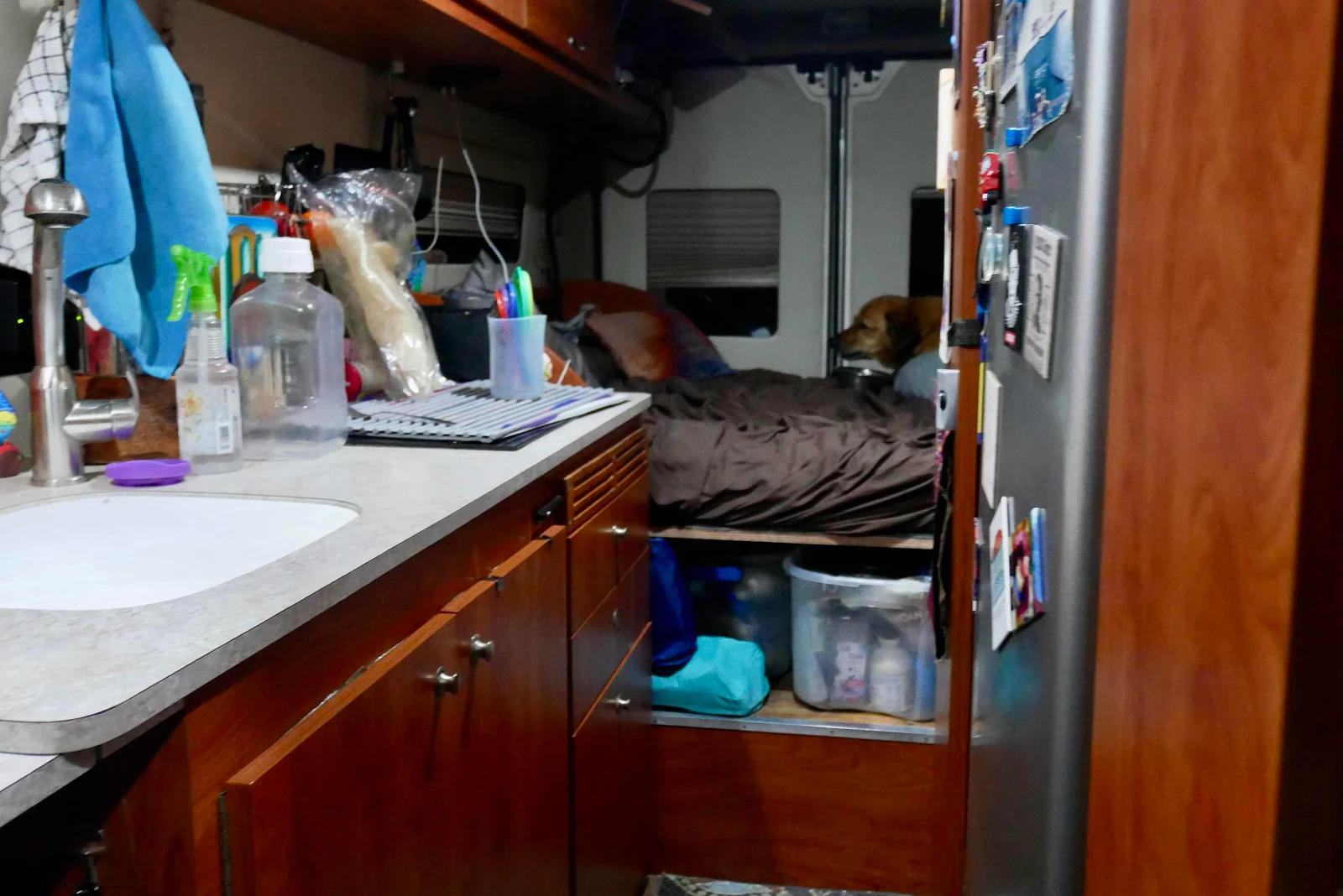 That’s Rusty having dinner. My consolation in the face of death, a supportive wife and a furry dog.