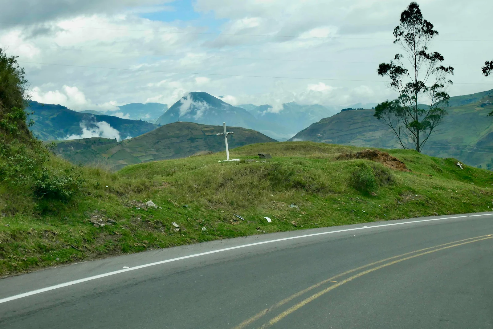 With the death of my oldest friend our plans were up in the air and Layne was looking for flights from Quito to Rome. Then we got word Giovanni’s funeral is set for Thursday. I don’t know why the rush, I had been hoping for Saturday to give me time to cross the hemisphere but that was that. We got on the road driving south toward Cuenca. I was worn out and we stopped early at a camping spot run by a young Ecuadoran Victor who grew up in the US. I wasn’t much in the mood to socialize with the French campers already there but heading north. That was our day. Herewith some pictures. Life goes on no matter how painful.