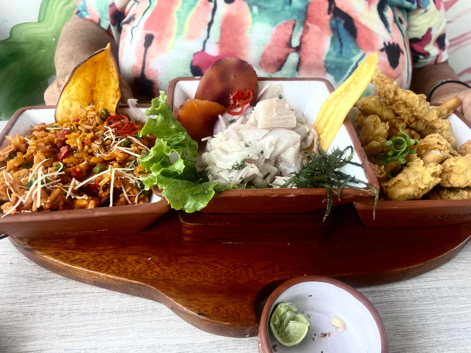 And a pile of potato avocado and shrimp. She brought home samples and they were quite delicious.