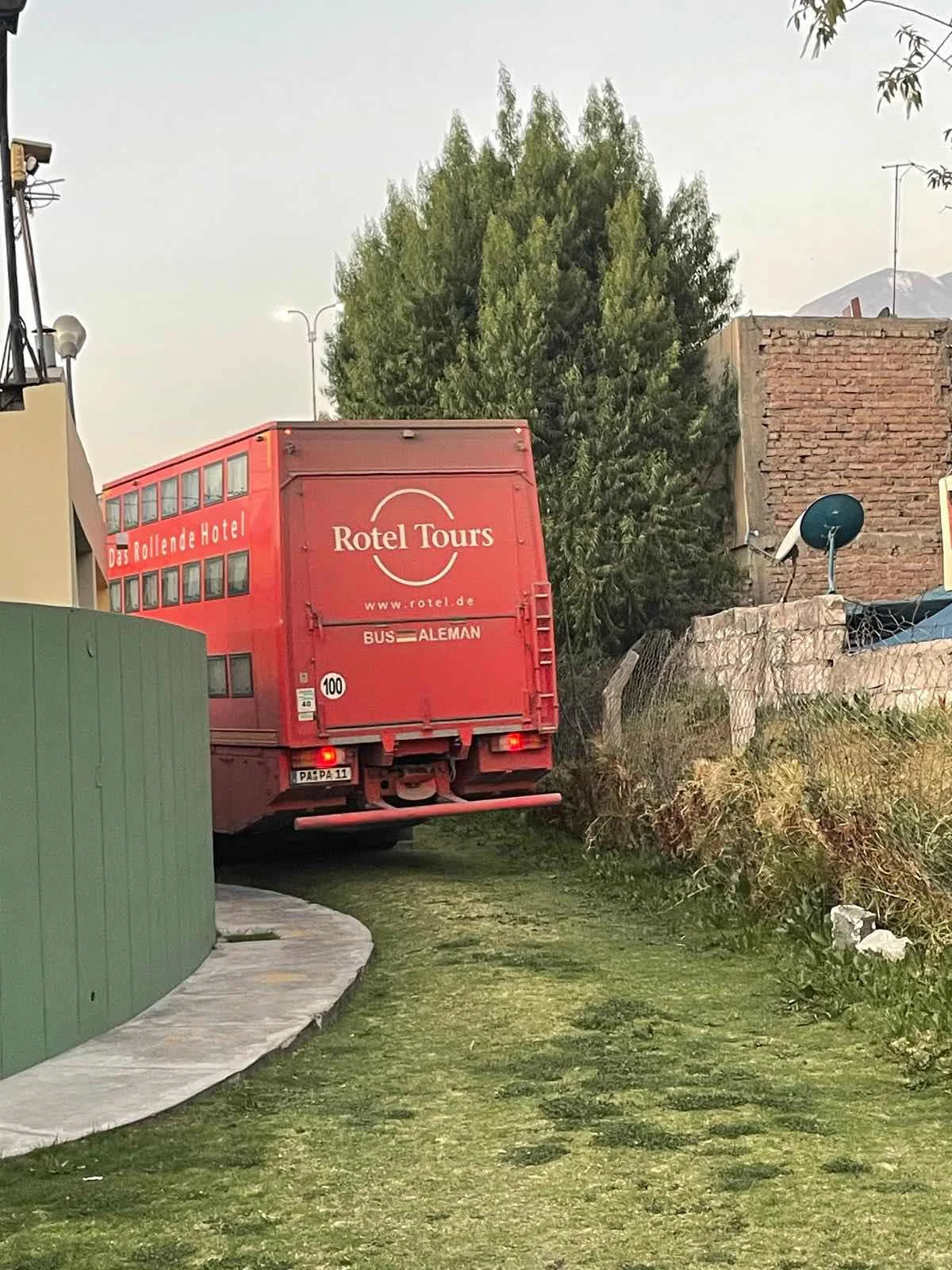 21 Germans showed up all at once at the campground in a rolling hotel. They travel with bunk beds in the bus, cook their food and spend three weeks together.