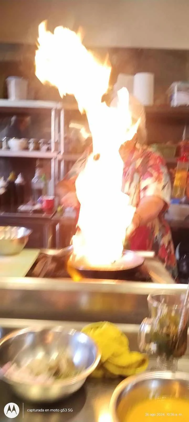 And producing piles of spicy Peruvian food, bell peppers stuffed with spicy ground beef…