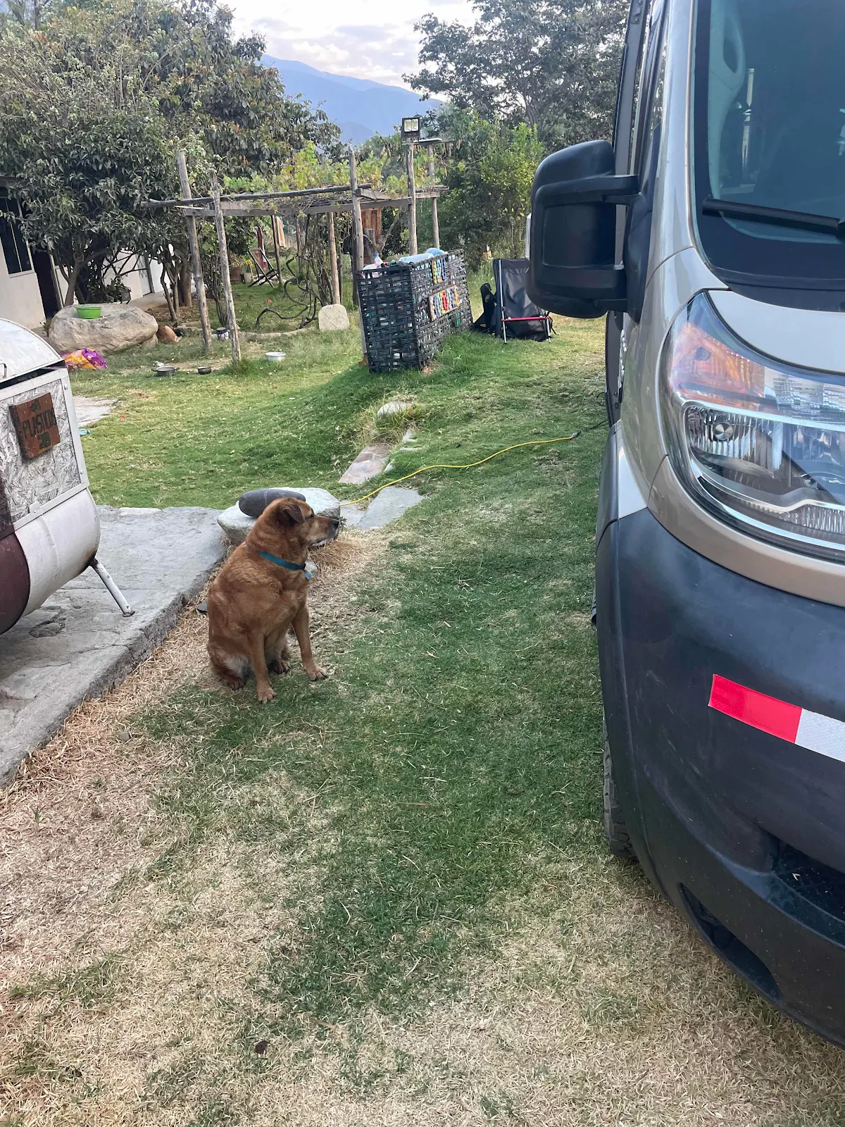 A German van, a Swiss-Italian van and us.