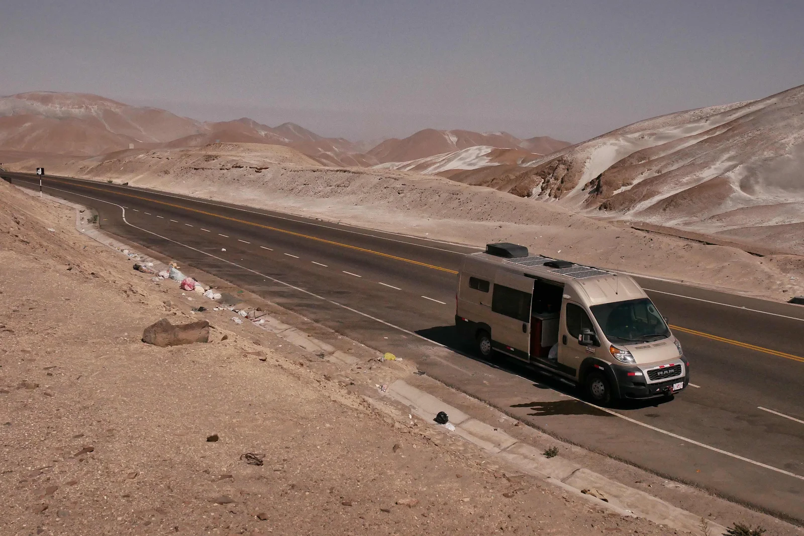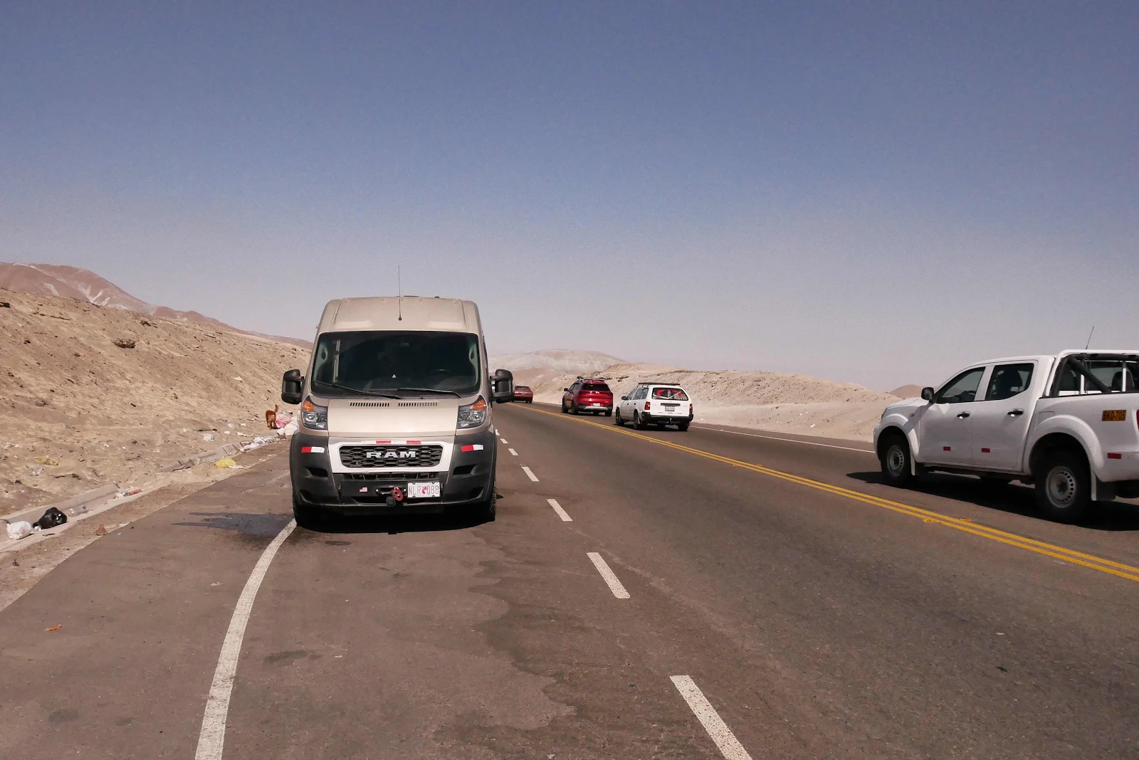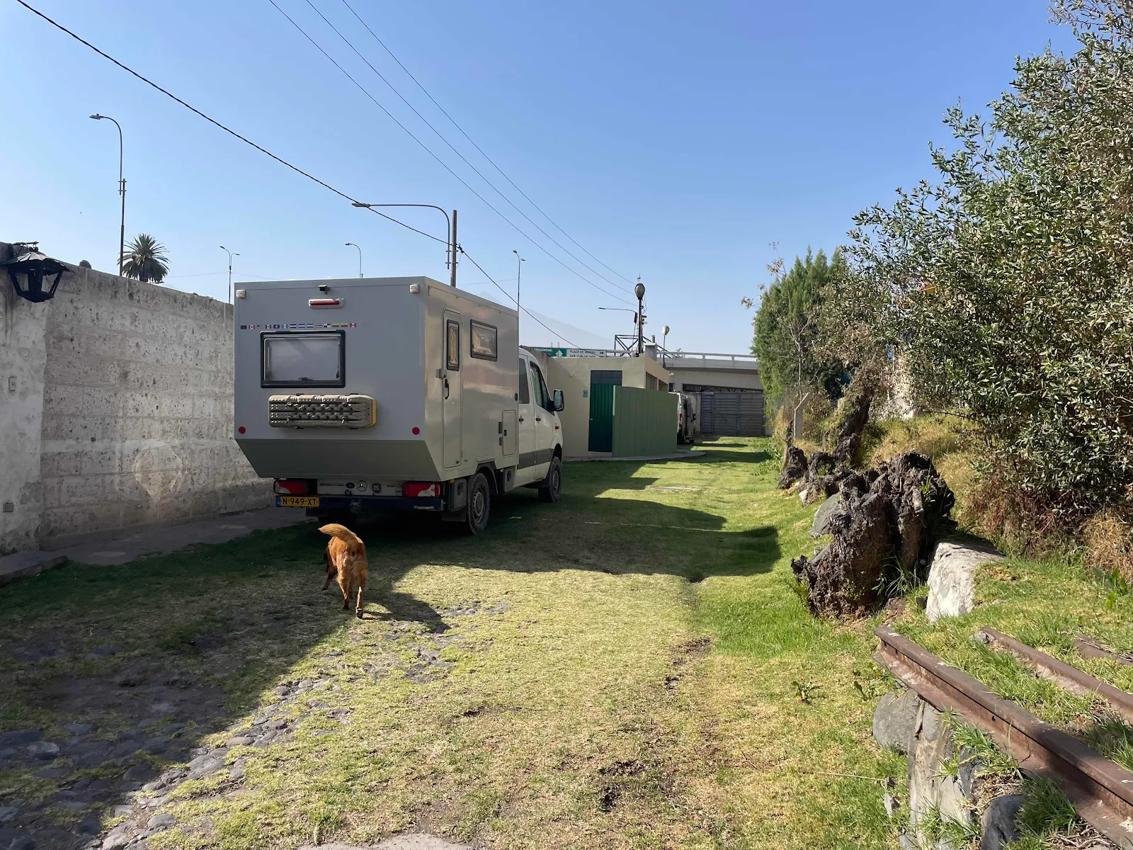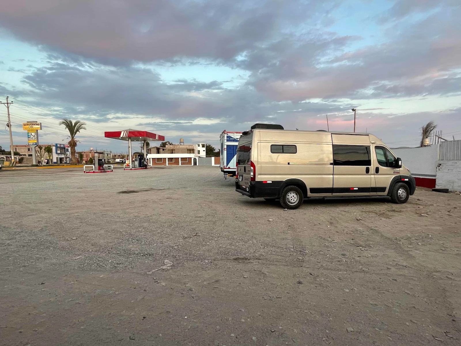 Our tactic when we look for a gas station to overnight in, is to pull up and ask if we can stay, so when they say yes we fill her up. This in the morning we tumble out of bed, slowly because our queen size is very comfortable on these brisk Peruvian mornings and I walk Rusty while Layne puts the kettle on.