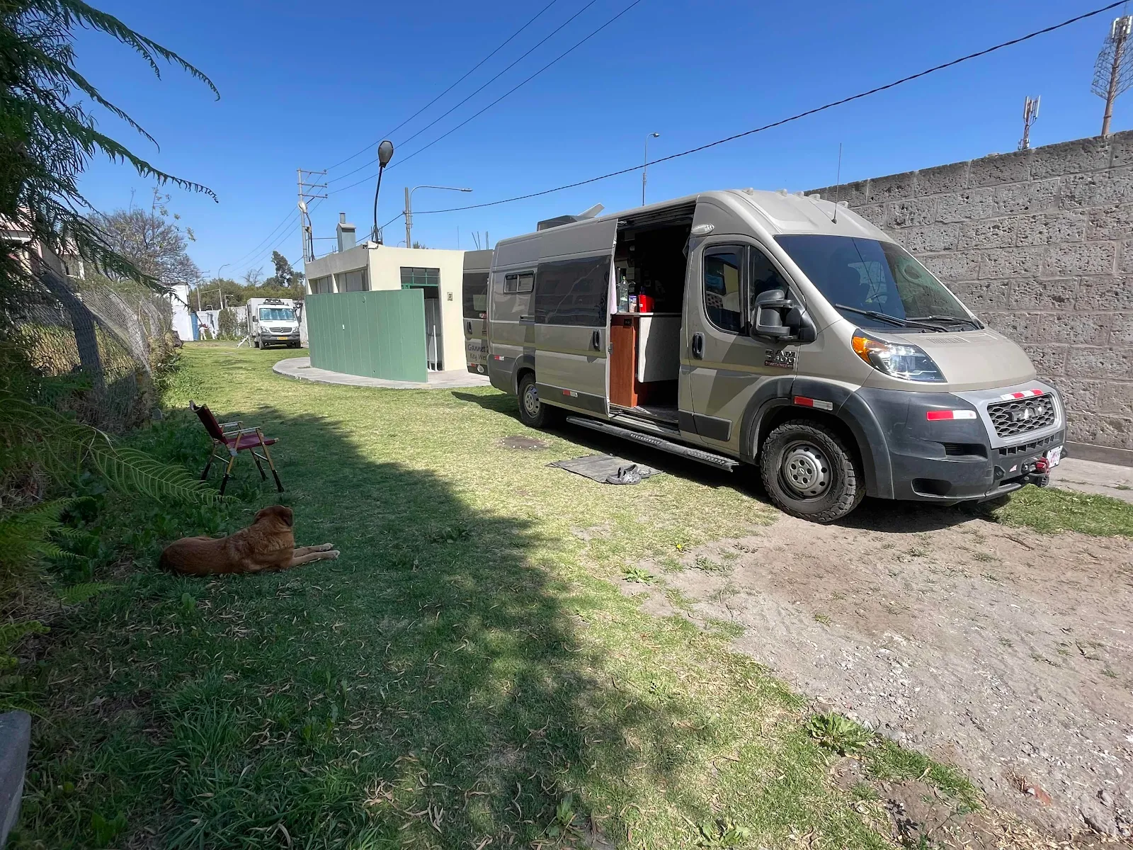 We overlanders have a wing of our own. There are 220 volt outlets along the wall and outlets in Peru take US plugs oddly, though we do have a converter box to put 110 volts into our onboard charger.
