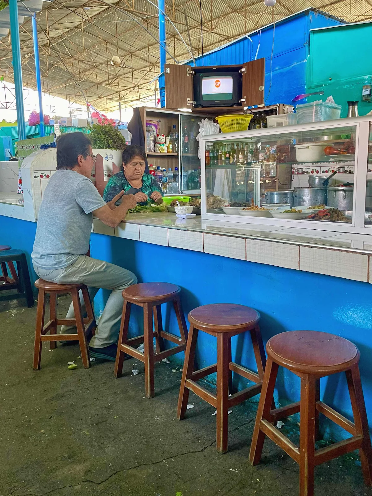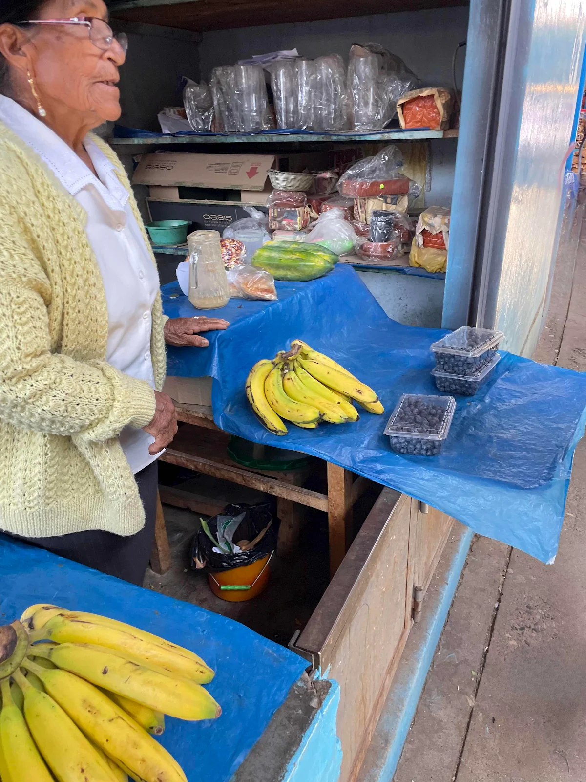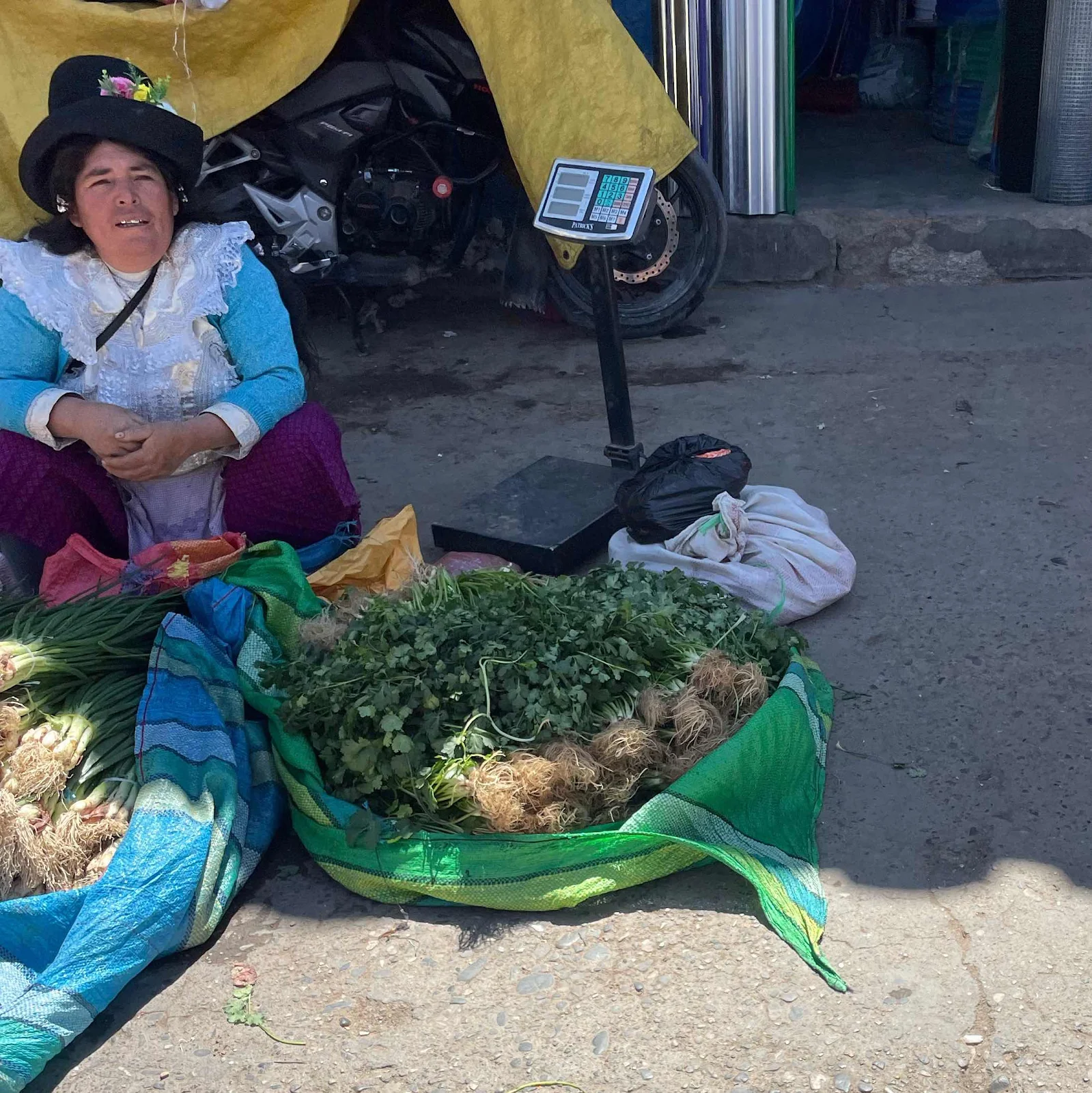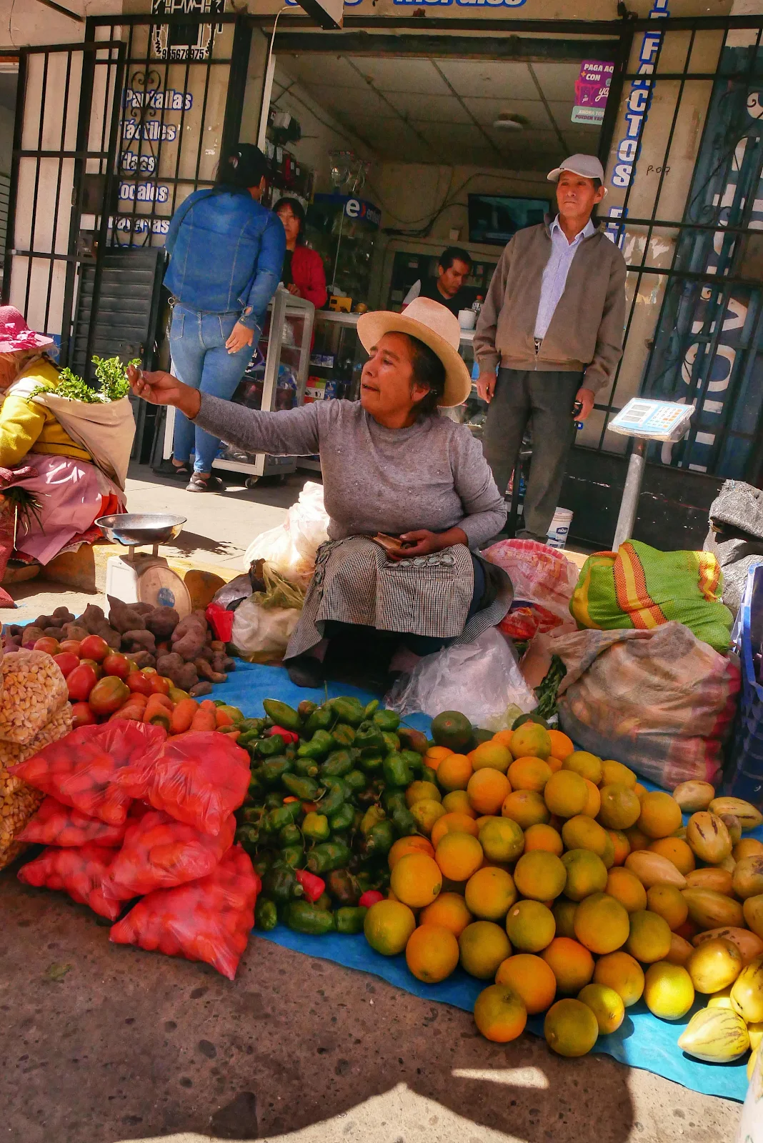 The pork lady who gave us a bag of pork with boiled corn and sliced onions for 15 soles - four bucks -and we made dinner for two out of it.