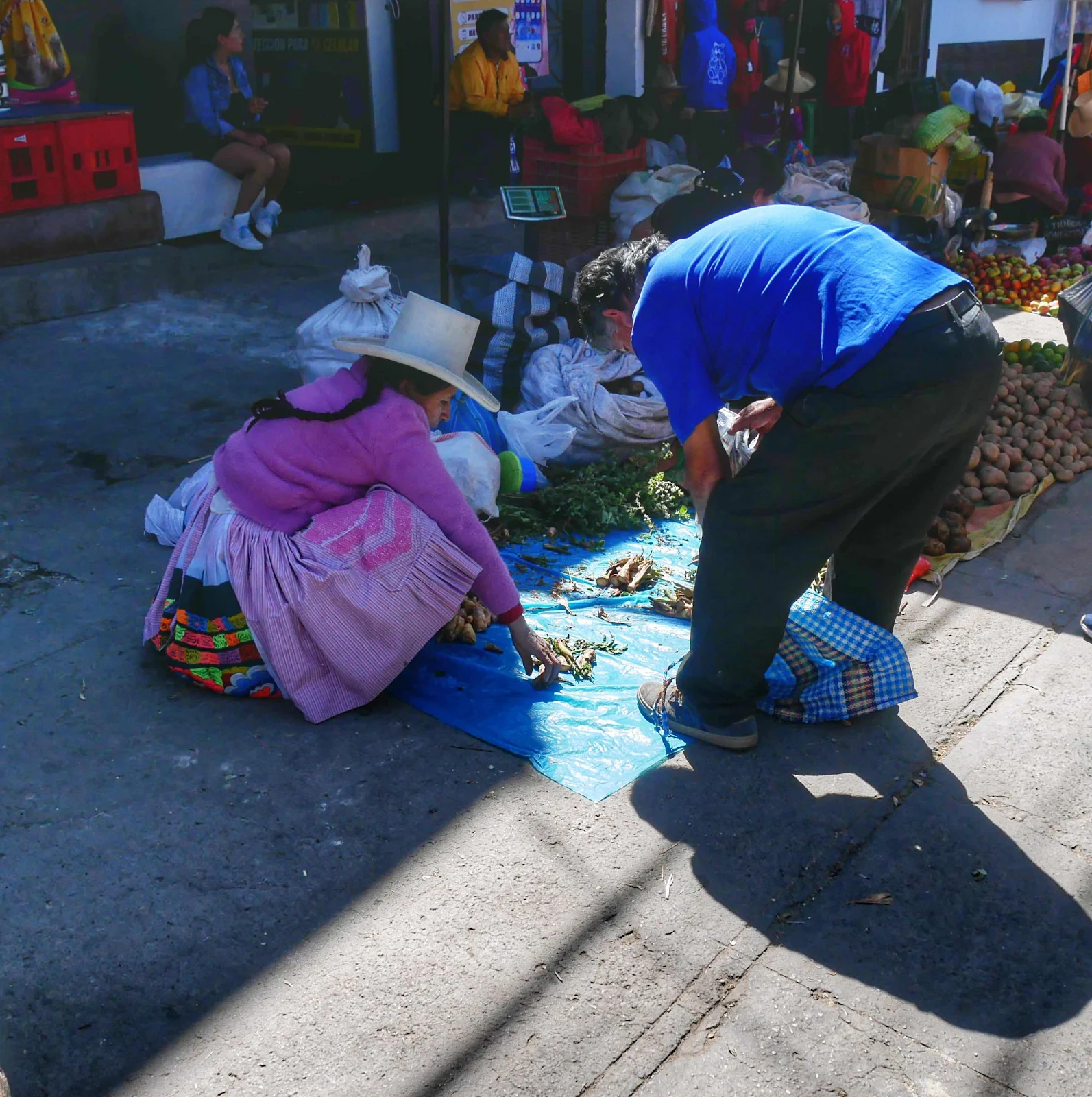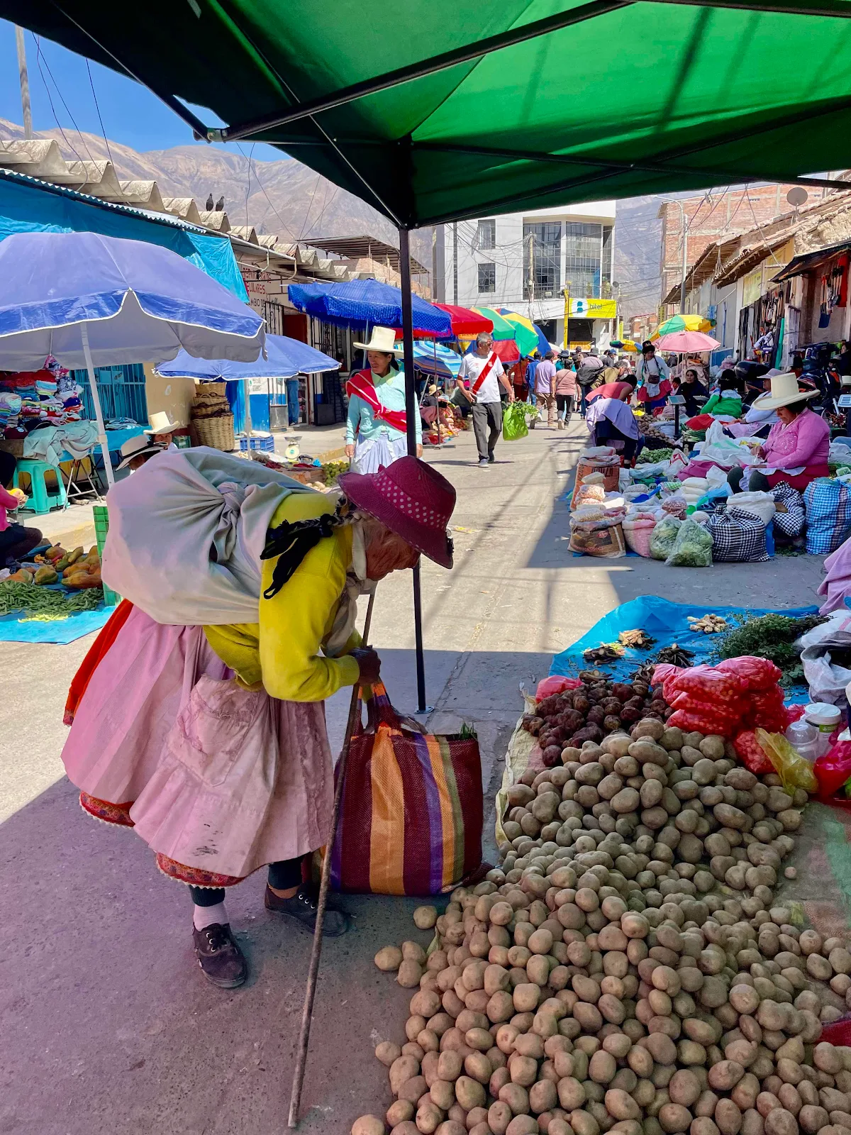 We took a tuk tuk into town with no idea what to expect. Color and light and chattering in Quechua all around us was what we found. We were the only foreigners that we saw if not the only tourists, as we did spot a few city folk in the crowd but if they were locals or from Lima I couldn’t say.