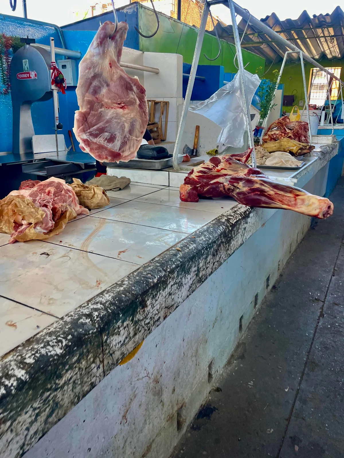 We walked past the meat market. We rarely cook meat aboard and only eat it at restaurants.