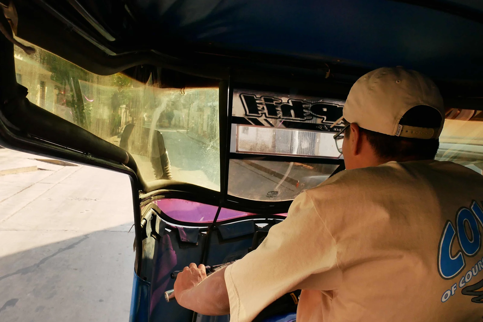 We left Rusty in the van as it’s his safe place when we are gone and we hailed a tuk tuk for the dollar ride into town. He could have come but we weren’t sure what we would find so we thought it better to leave him.