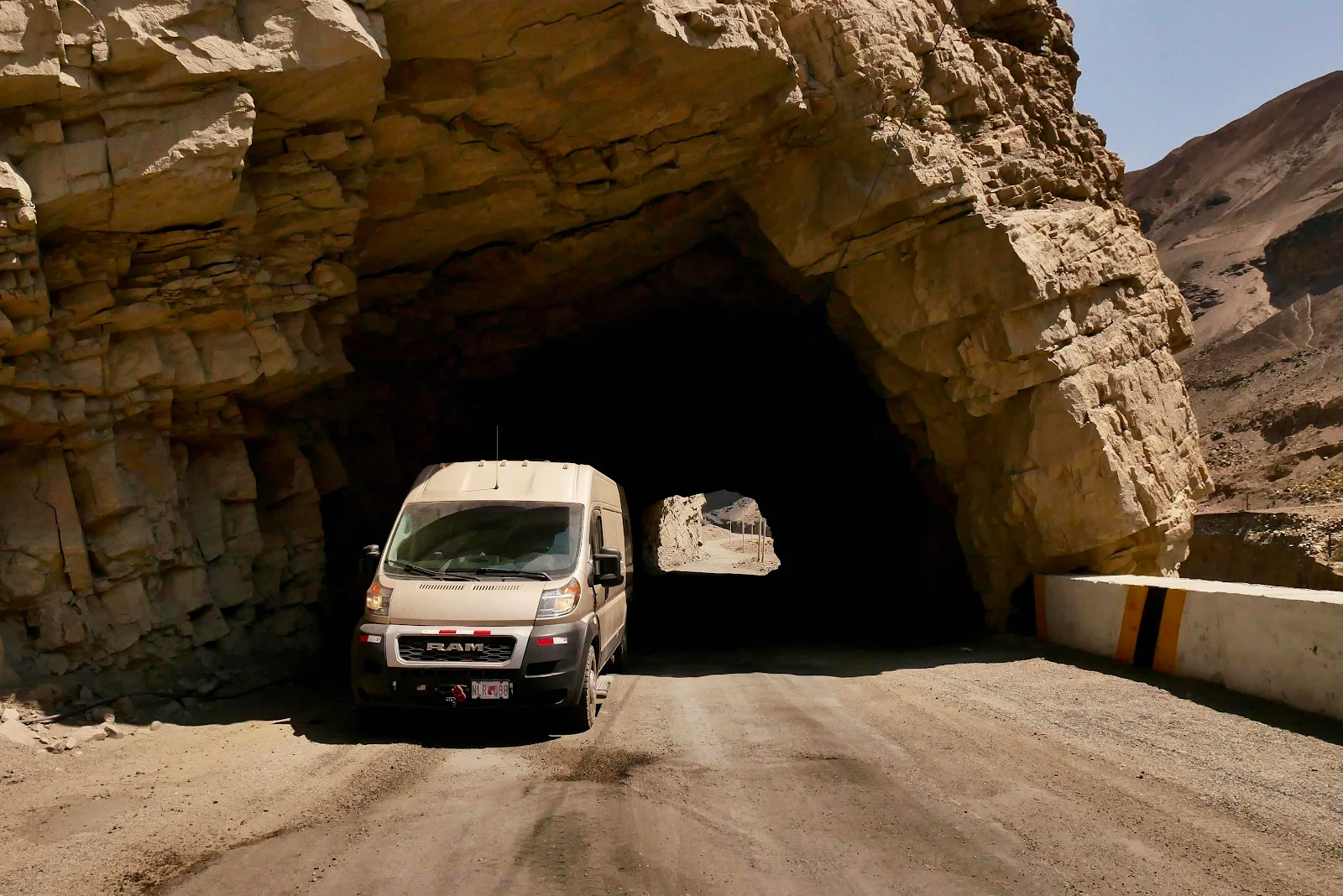 As you can see much of the road is one lane which can lead to passing situations. There are pull outs, some of them rather precarious dangling over the lip of the canyon and twice I had to reverse in tunnels where we met traffic head on. I pride myself on being able to back the 21 foot Promaster and I got put to the test as locals don’t seem very keen to show off their reversing skills.