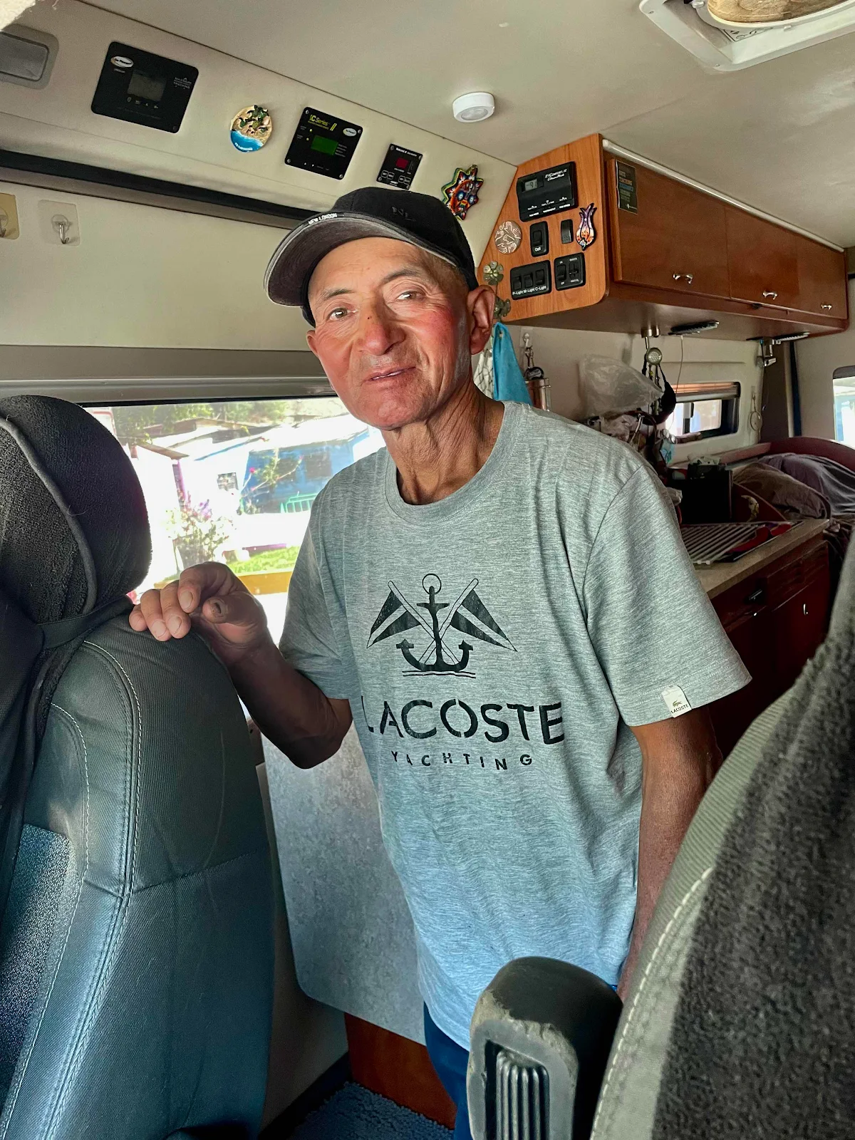 We passed a minibus stopped in a pull out with people standing around. Apparently the brakes had failed and the driver was waiting for help to arrive. We did the only thing we could do and passed our water jug around with cold water from our fridge. They had been waiting an hour with more to go before help arrived.
