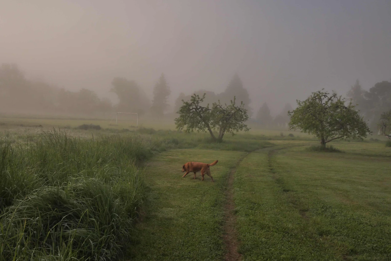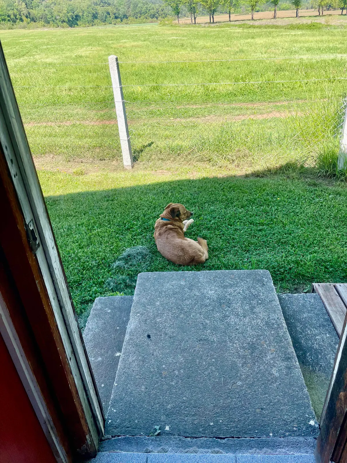 Rusty loved the thick cool grass; I loved the toilet seat and toilet paper. Priorities…