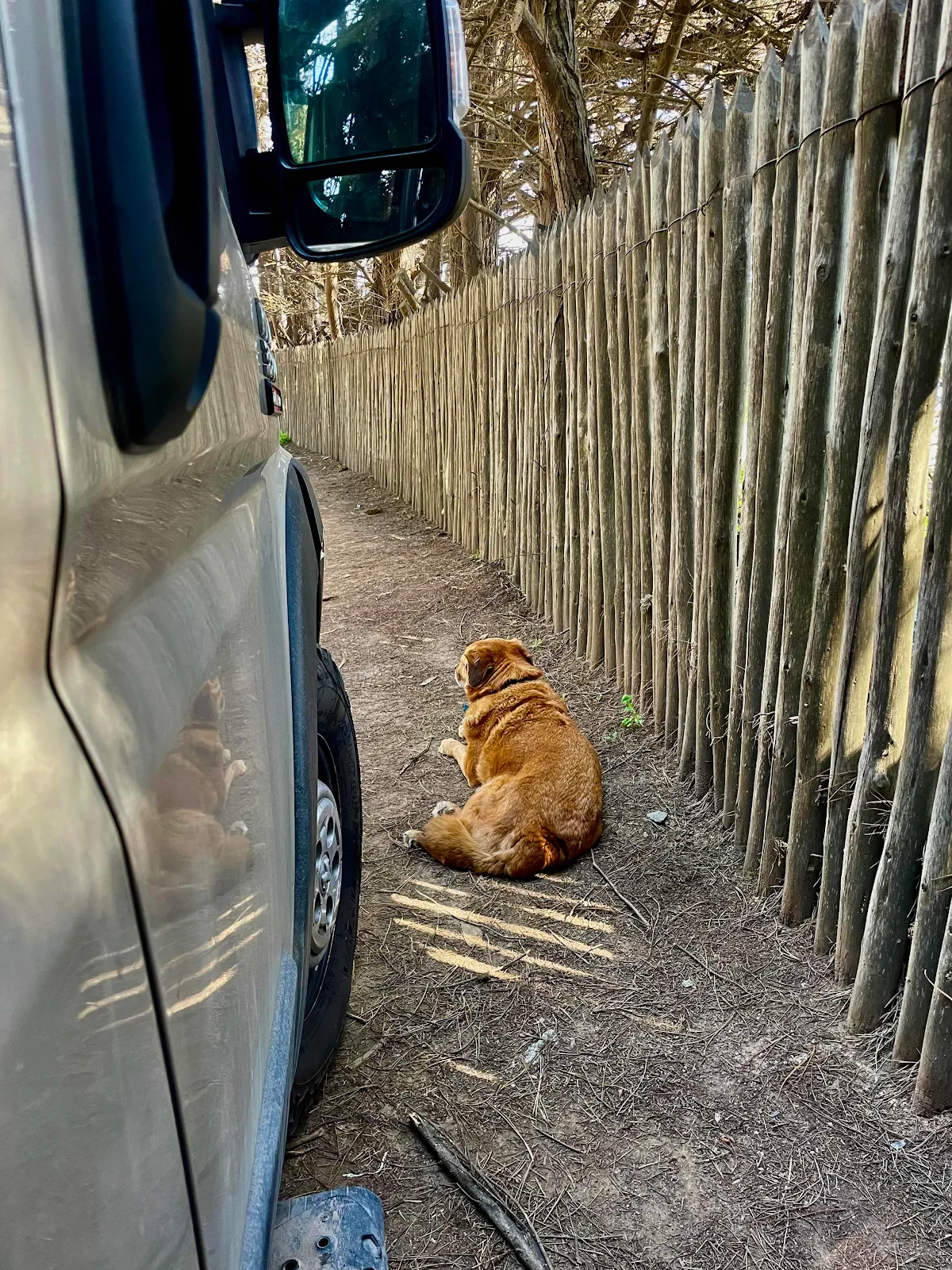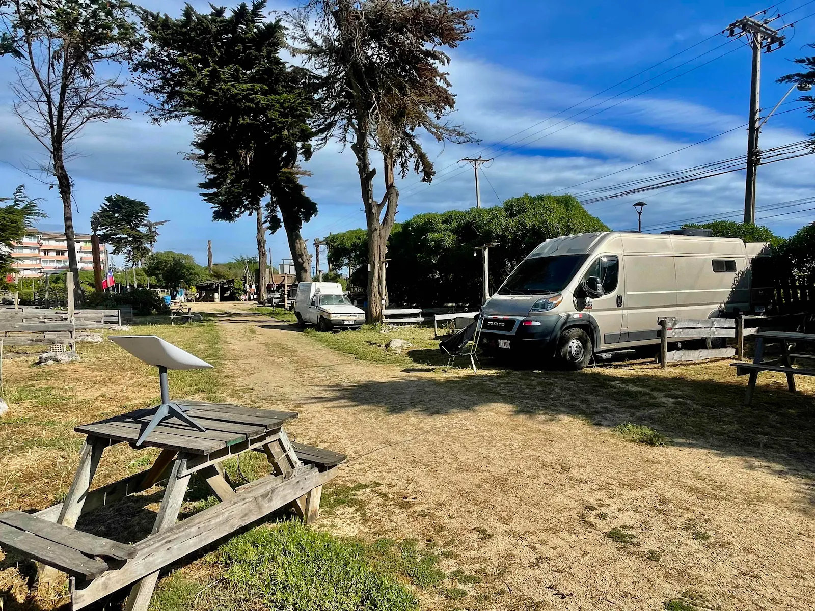 And the owner came by, a tall white surfer dude whom I’ve seen on every California beach I’ve visited. We paid $16, a ridiculous amount for a campground without services essentially especially as he warned us to take in our Starlink before we went to bed. “People walk by on the sidewalk,” he said. So not much security either!