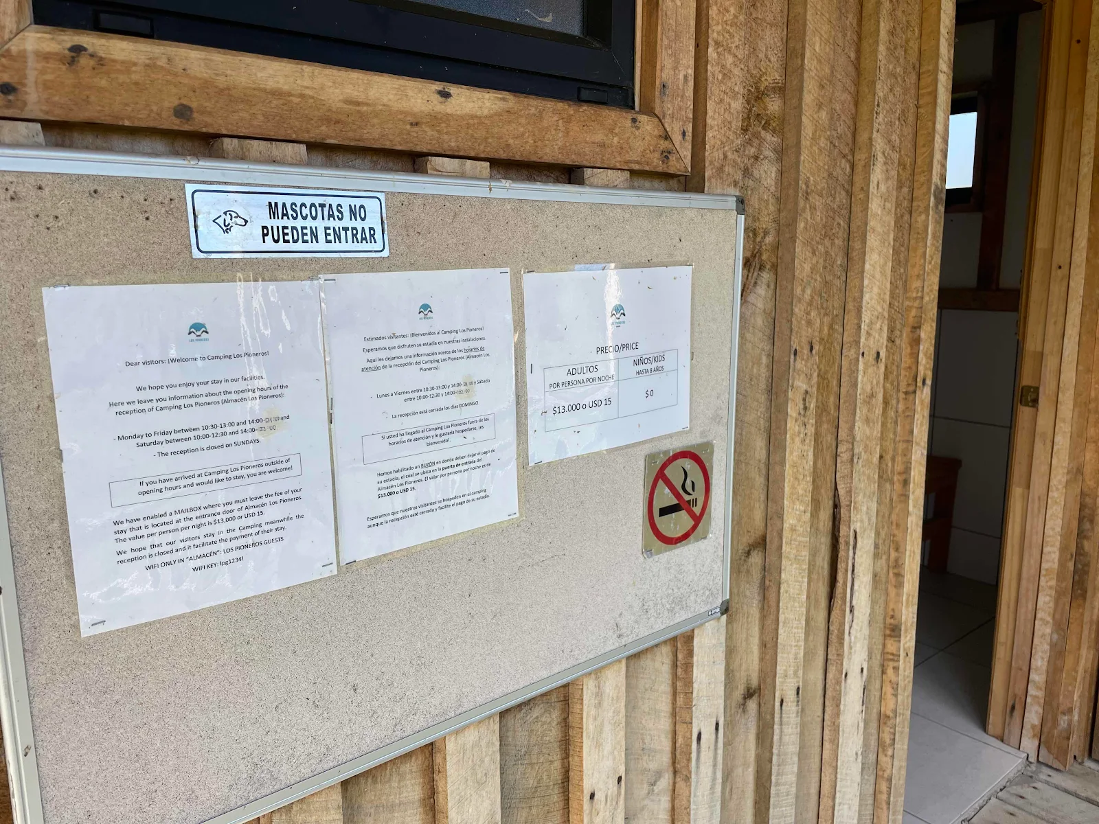 It was after two but the market which serves as the campground office was still closed. I read the instructions in English and Spanish and wrote down our license plate on a scrap of paper and bundled the required 26,000 pesos ($28) into the drop box for use when the office was closed. There was no mention anywhere of a no dog policy.