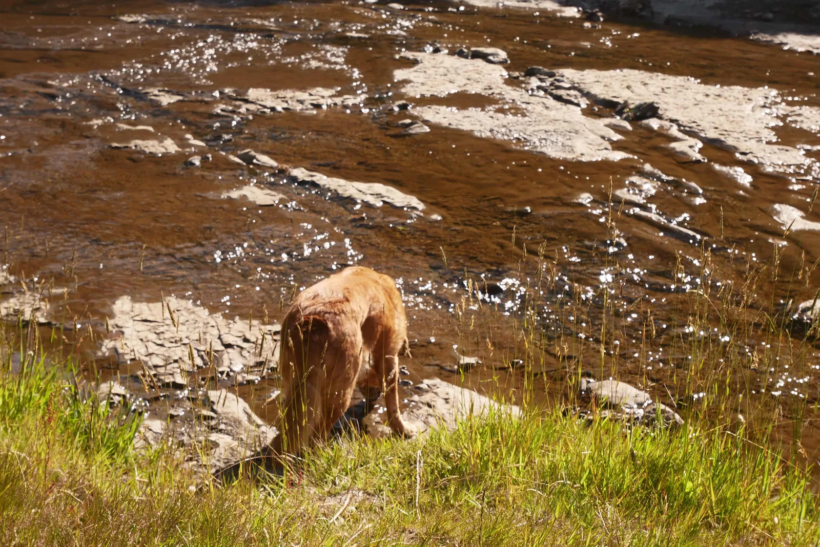 We were packed and ready to go in ten minutes feeling miffed but we had at least showered and taken advantage of the facilities and had even dumped our trash and we knew there were lots of wild camps up the road …The funny thing was we had been visited by this local dog wandering around our campsite. No dogs indeed.
