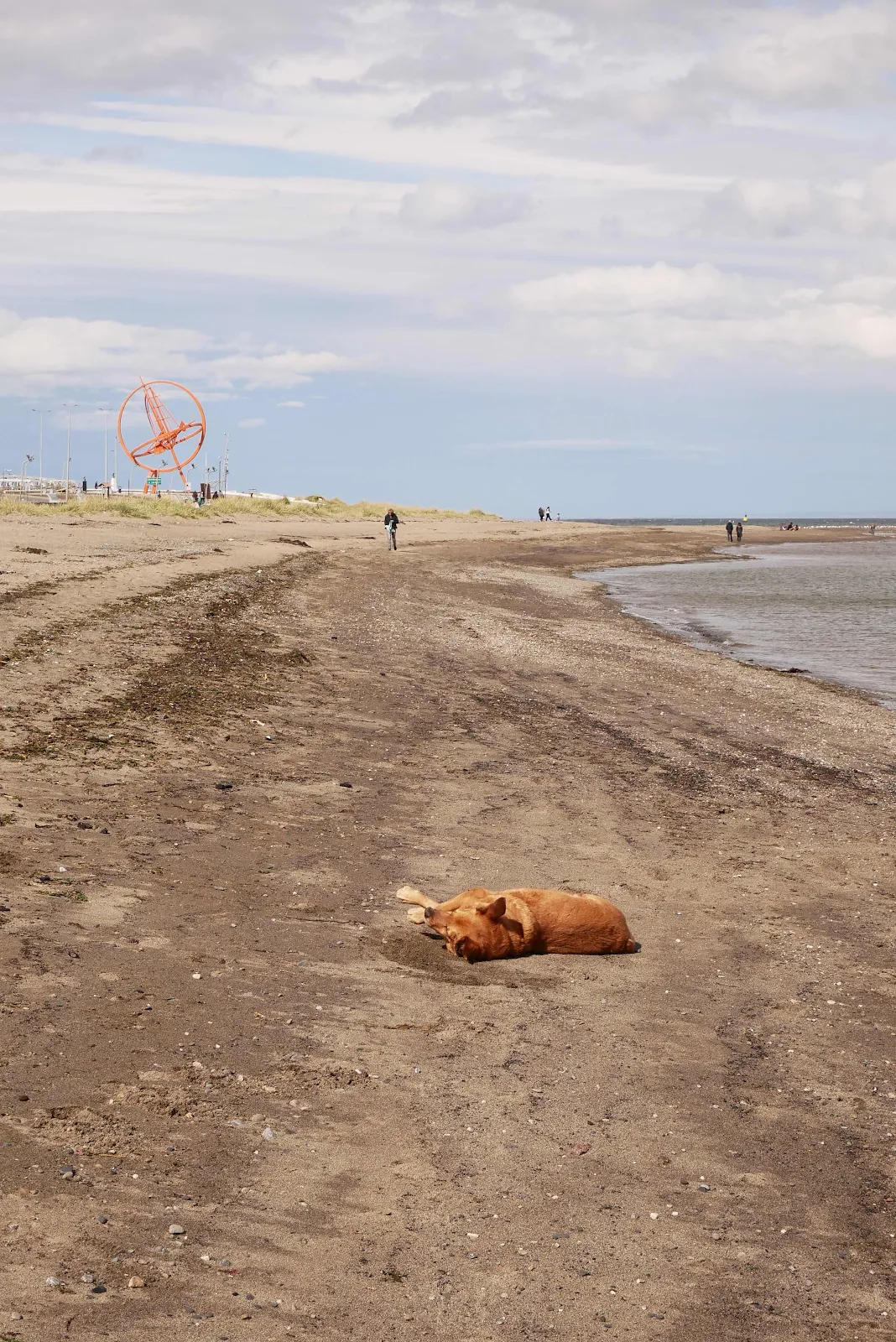 I confess I really do enjoy the freedom of Latin America taking my dog with me to the beach just hanging out in the sun with no one wigging out about leashes and stuff. I know many dog owners are assholes and don’t pick up and so on but there is liberation to be found here especially if you behave yourself. The big orange Astrolabe on the waterfront is the Magellan monument.