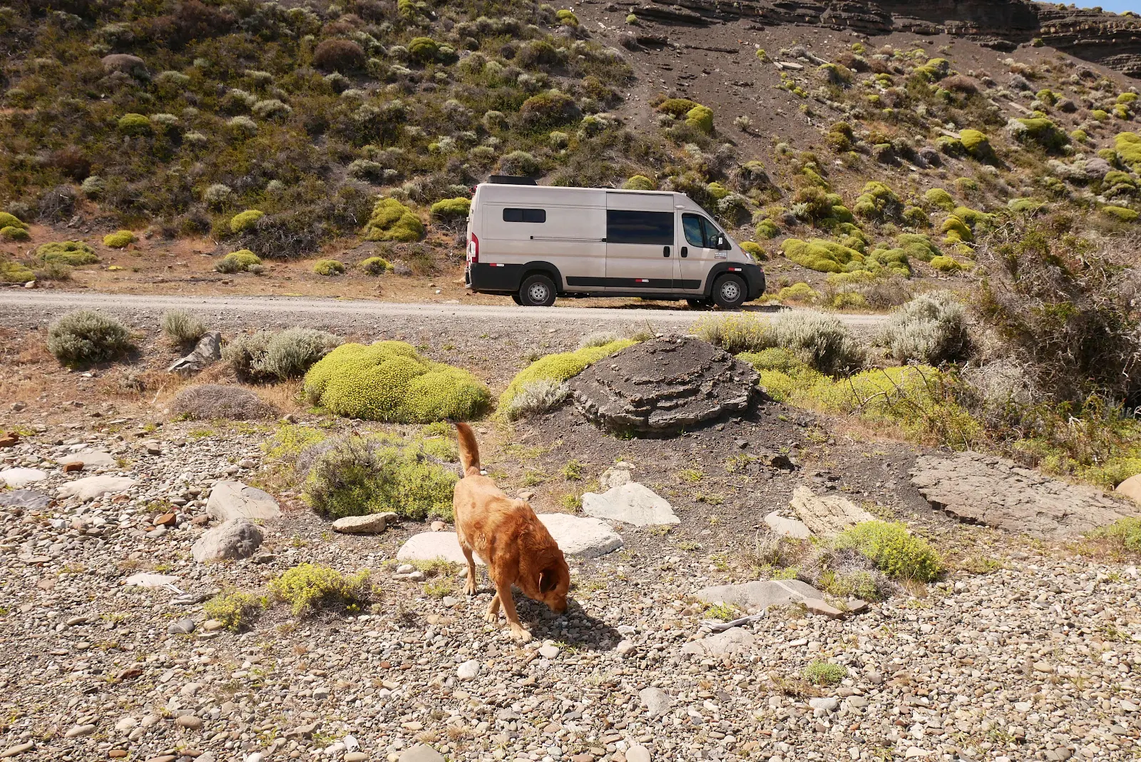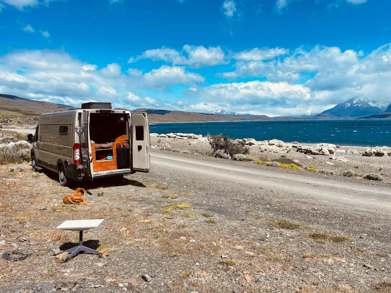 The others left after a while, a few local cars swept through at high speed and the cyclists were long gone. We put up Starlink and our solar panels were cranking strongly in the austral sun.