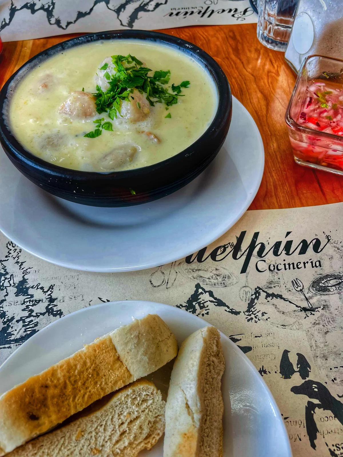 And a fish soup for main. I had cod and Layne had shellfish. Potatoes, peppers rice and huge chunks of white meat to keep cold Patagonia at bay.