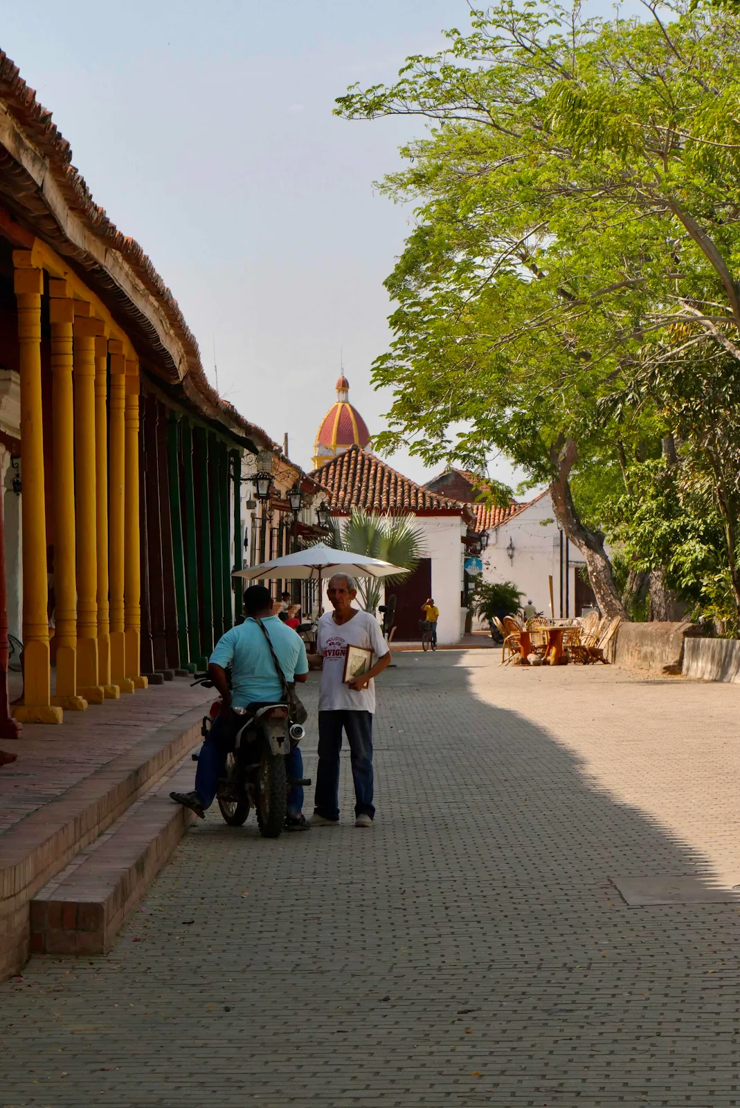 Mompox is hotter than Hades, and Rusty doesn’t like that. But we have dragged him out on the streets with us and just to prove that I have some pictures of Rusty, hotter than ever, with a beautiful city as a backdrop. While this is going on I’m hoping I shall be driving GANNET2 out of a container at the docks in Cartagena. More on that tomorrow; meanwhile Rusty in Mompox.