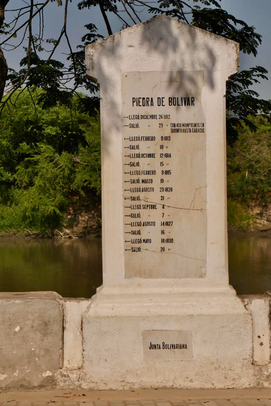 He arrived May 18th 1830 before continuing downriver to die in Santa Marta months later.