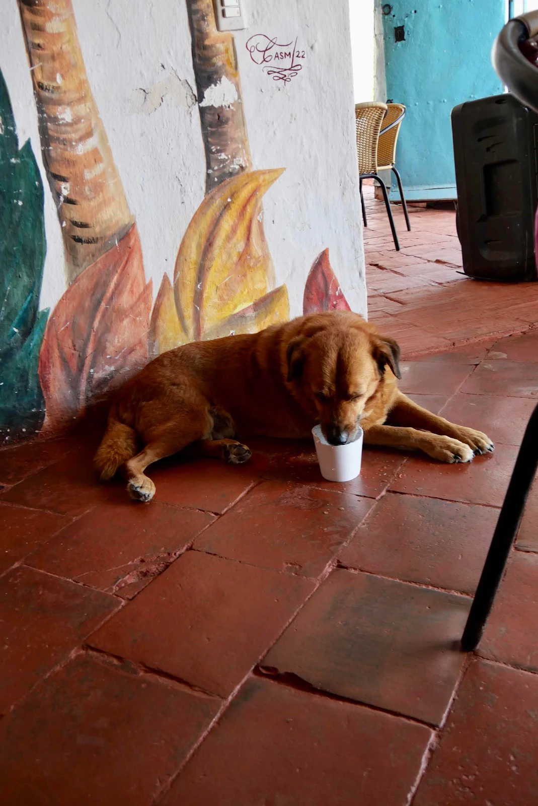 I have a photo of Rusty staring out at the St Lawrence River when we took him to Québec City a few months after we rescued him in 2016. Now I have a picture of him strolling past Colombia’s Magdalena River. Cool.