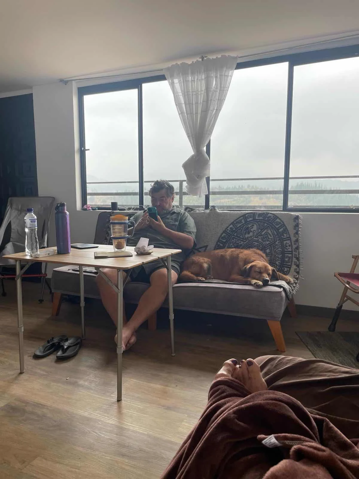Layne found an apartment on a farm in the mountains for ten days far from stereotypical madding crowds and here we are learning to breathe at 8600 feet in a one bedroom apartment that has heat. We are just five degrees north of the equator but it is cold at night, hovering between 40 and 50 degrees and this is just the start of the mountain range we plan to drive at heights between 12,000 and 15,000 feet.