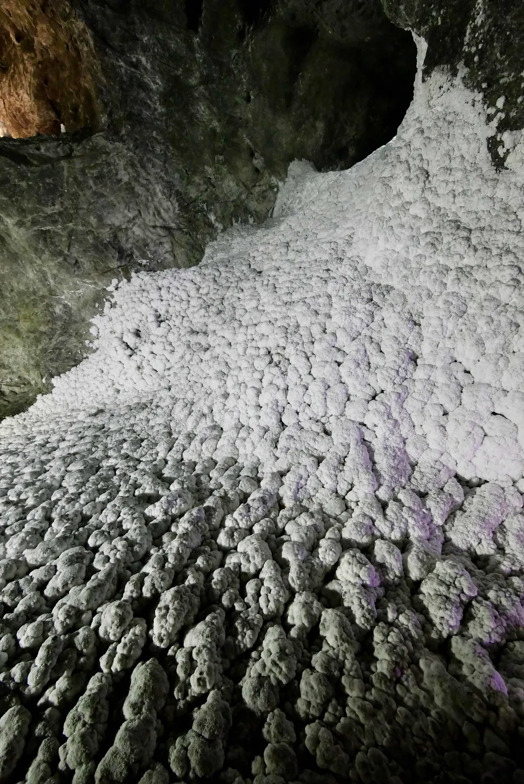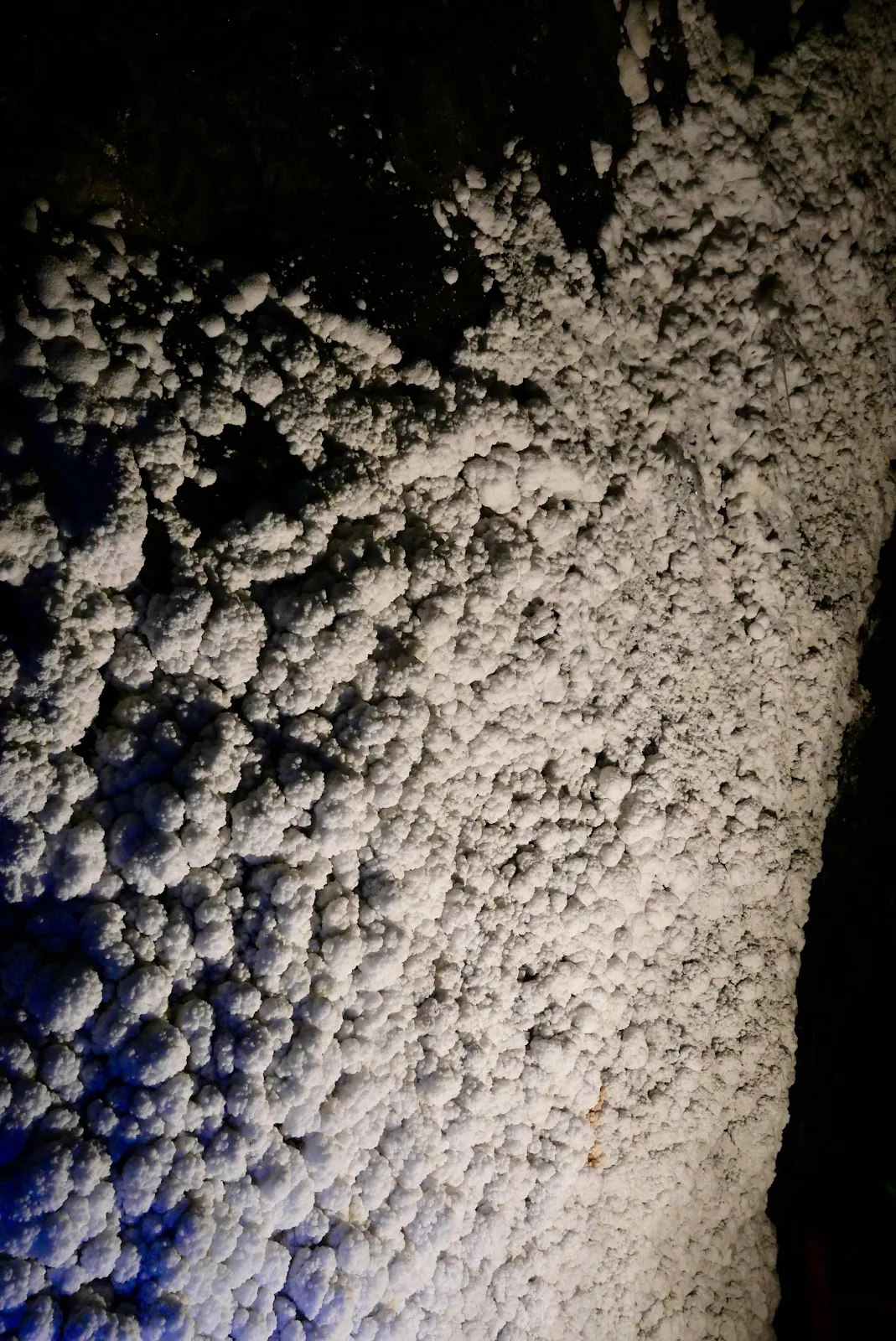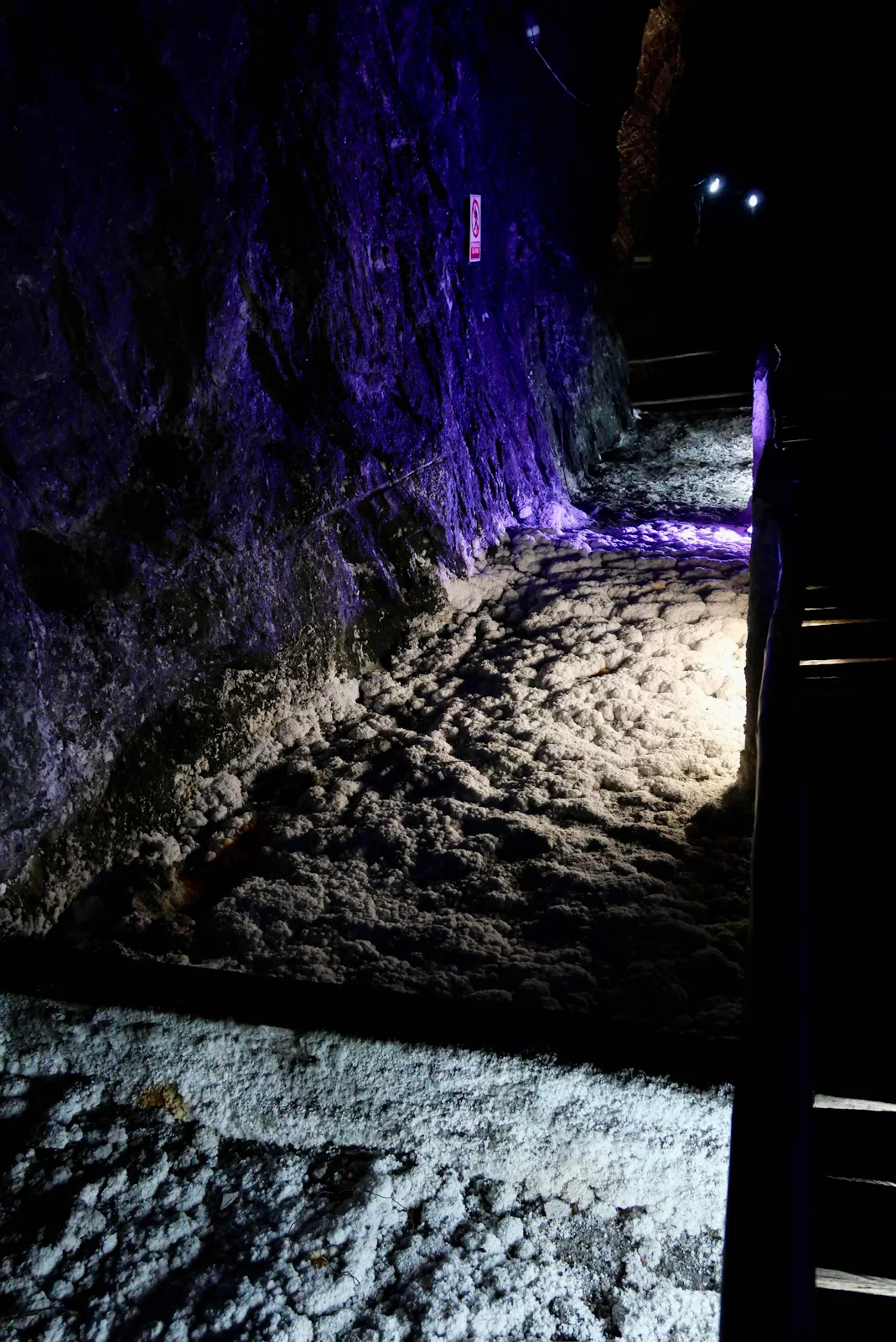 Water dripping through the rock produces the cleanest salt but then you end up with water all over the place, which is great for tourists who get stalactites of salt hanging from the ceiling and reflecting pools of water for their amusement.