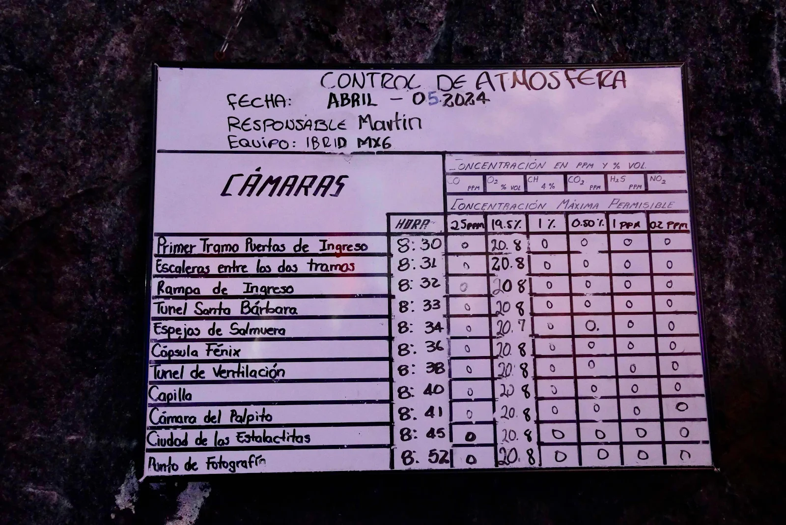 Oxygen levels in the mine are monitored daily. There are no fans in the mine as air comes down readily and naturally through shafts built to the surface. We breathed easy.