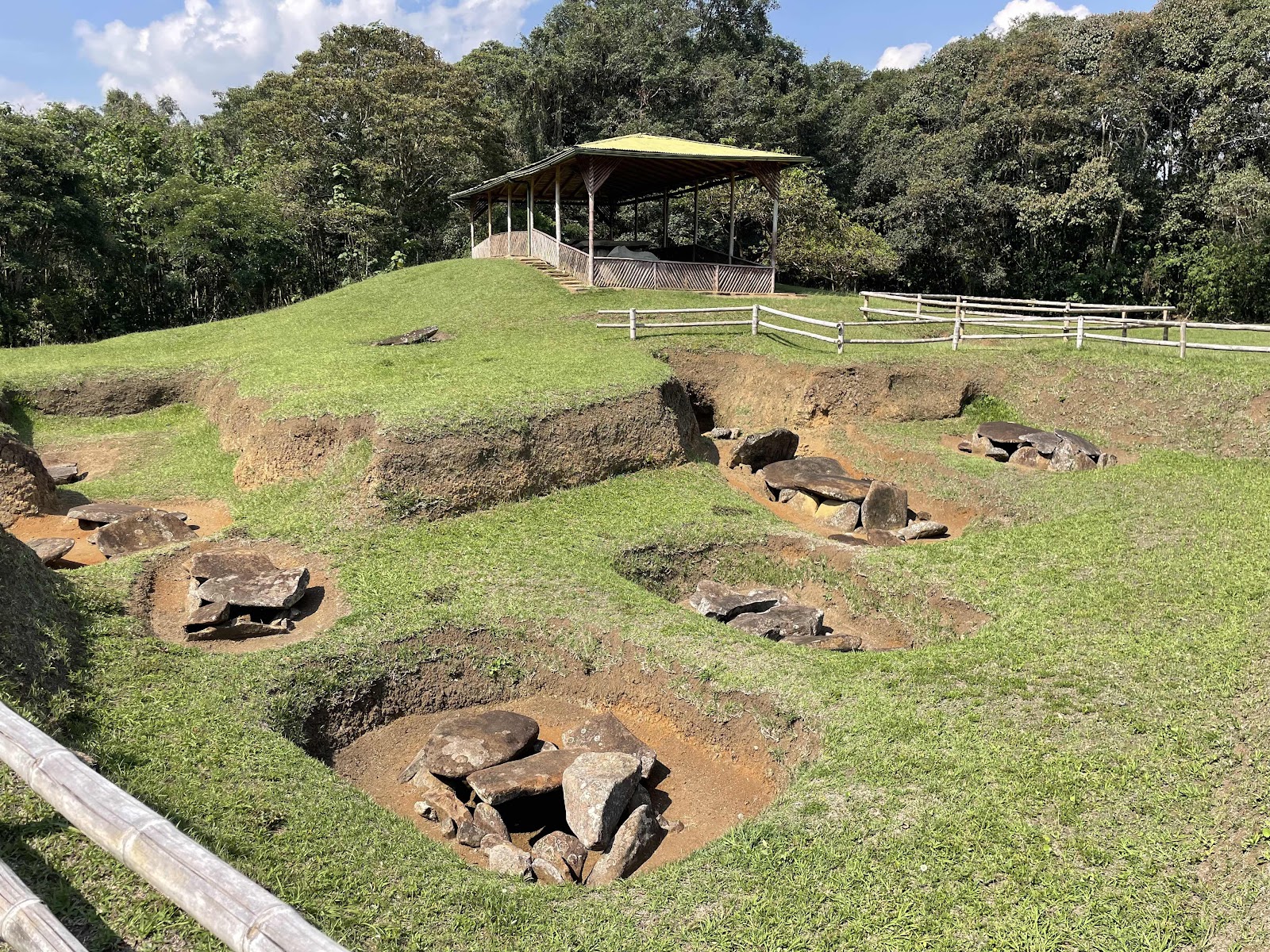 The San Agustín Archaeological Park(Spanish: Parque Arqueológico de San Agustín) is a large archaeological area located near the town of San Agustín in Huila Department in Colombia. The park contains the largest collection of religious monuments and megalithic sculptures in Latin America and is considered the world's largest necropolis. Belonging to San Agustin culture, it was declared a UNESCO World Heritage Site in 1995. The dates of the statues are uncertain, but they are believed to have been carved between 5–400 AD. The origin of the carvers remains a mystery, as the site is largely unexcavated. From Wikipedia.