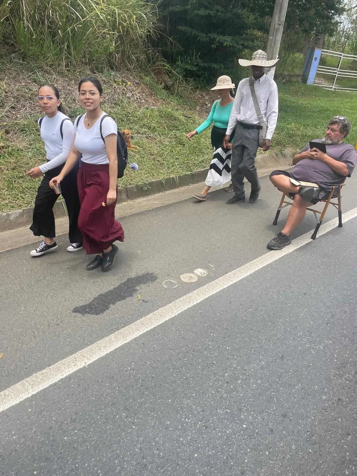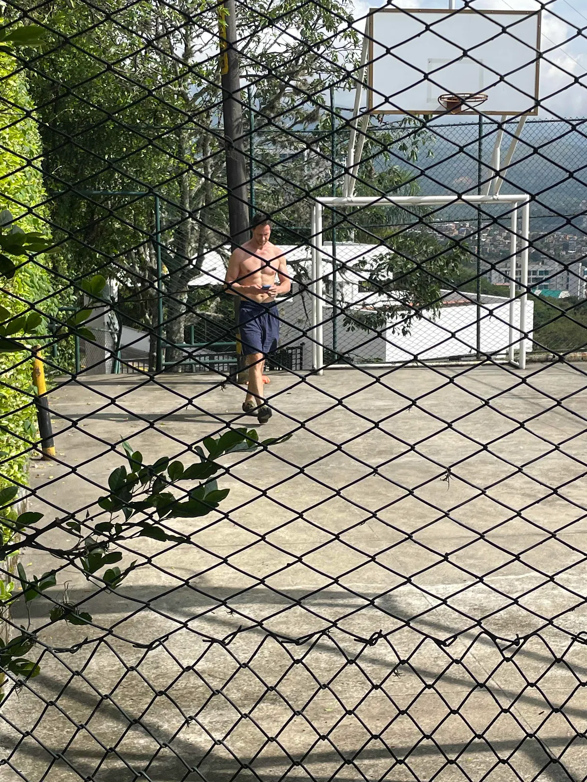 We had been having no luck getting a response from immigration when we tried to use their electronic forms (in Spanish and English) to get a ninety day extension to our original ninety day permission to stay in the country. As we were in Cali we tried to hire a company that helps foreigners get residence in the country. Our WhatsApp messages started promisingly but faded into silence so we decided to go to the office directly. In Latin America I find phone calls and WhatsApp messages are superseded every time by personal contact. We drive up into an upper class neighborhood. Until Google sent us to a gated community…”I’ll bet this is a home office,” I said as we were stopped by big black gates across a driveway into a neighborhood of luxurious sky rises in a hill high above the city. We pulled over in some grass to let Rusty out and contemplate our next move. Which was when a man exercising on a tennis court stepped up the fence fascinated by our presence.