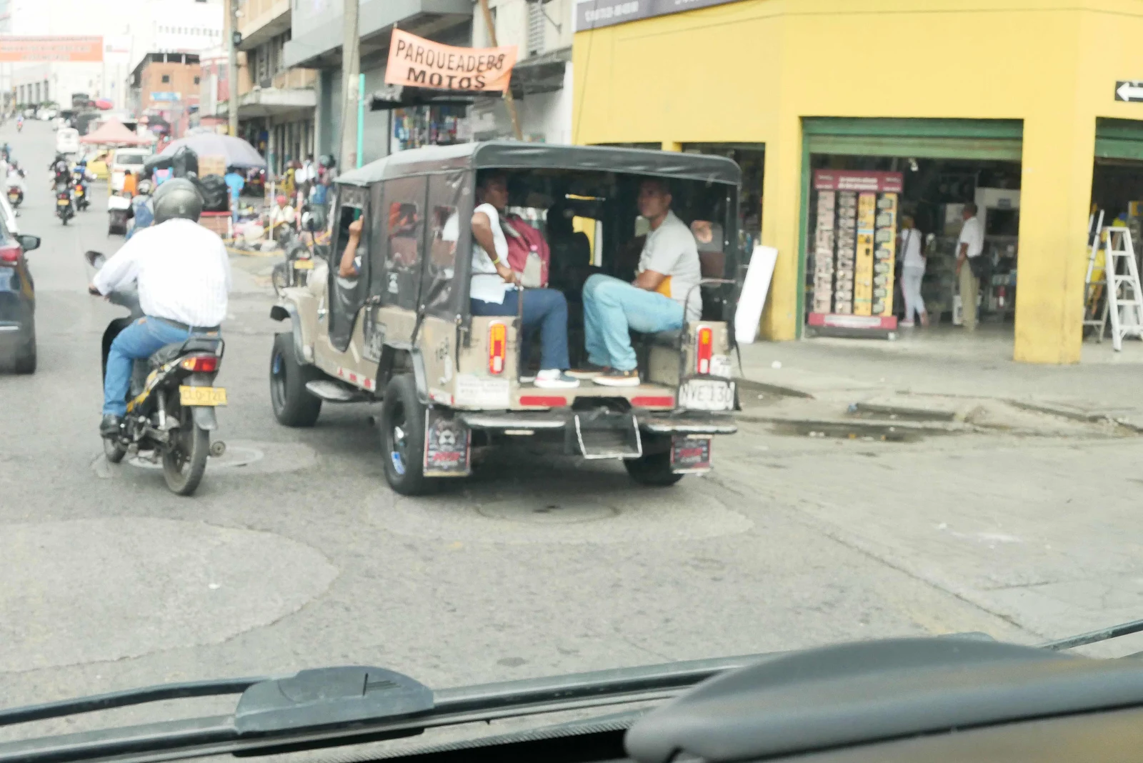 Back out in the real Colombia we made our way across town following the blue line. Below you see a southern Colombian typical bus (collectivo or Gua-gua) an older four wheel drive truck with a canvas roof and bench seats. Why not a van I don’t know: