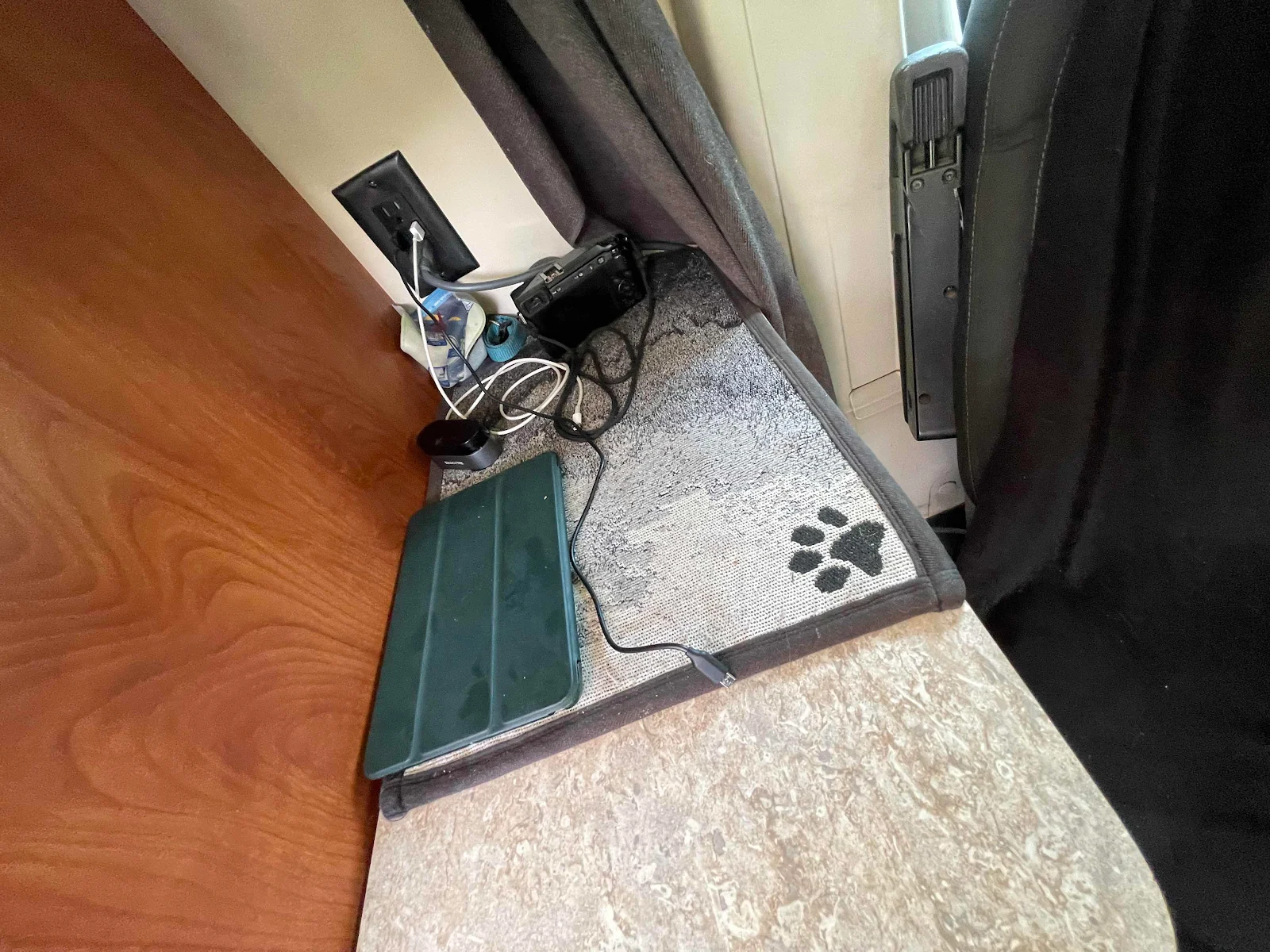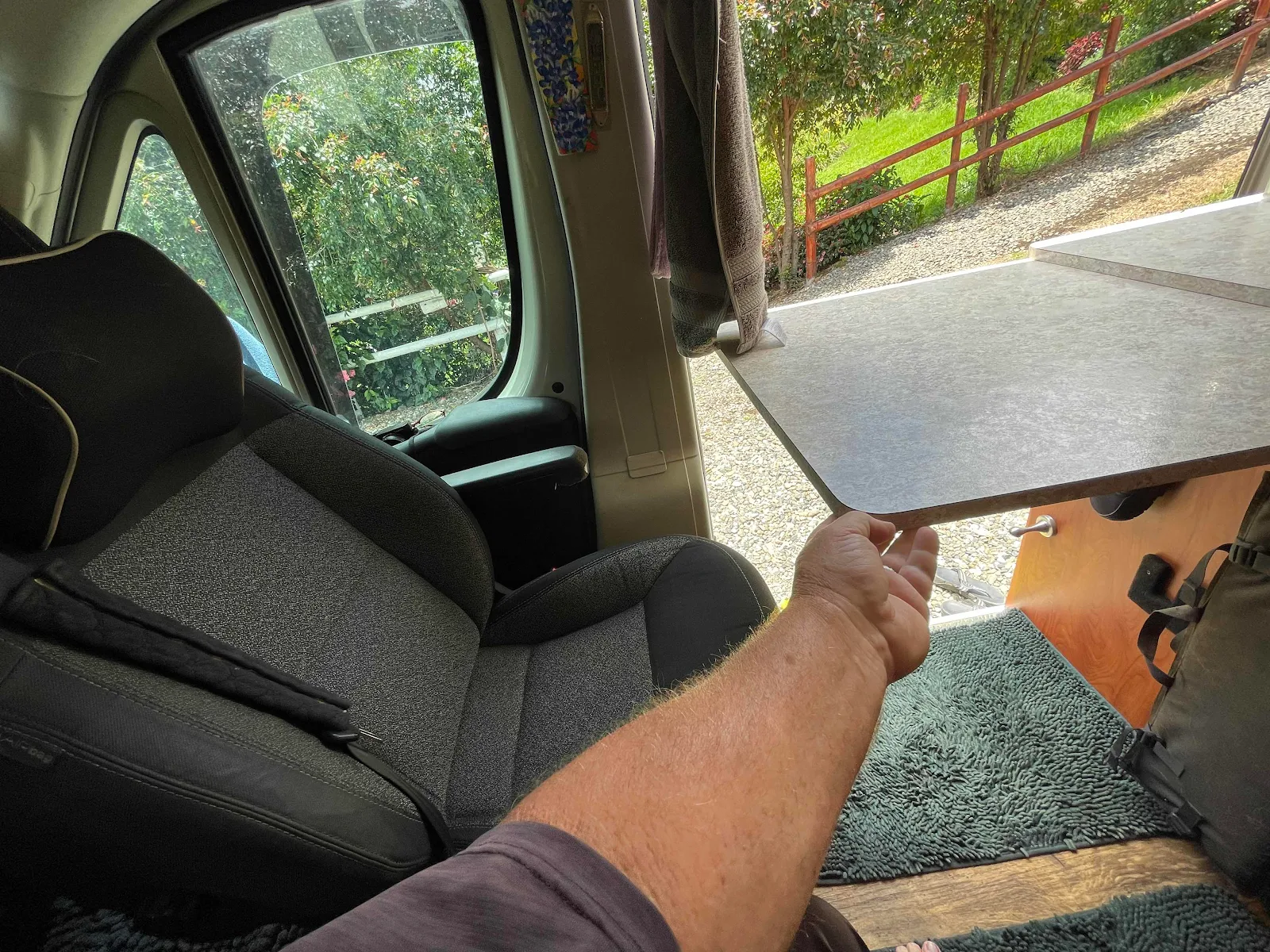 And my desk when my seat is turned round. I do almost all the driving and Layne does the cooking. Make of that what you will but we like it like that.