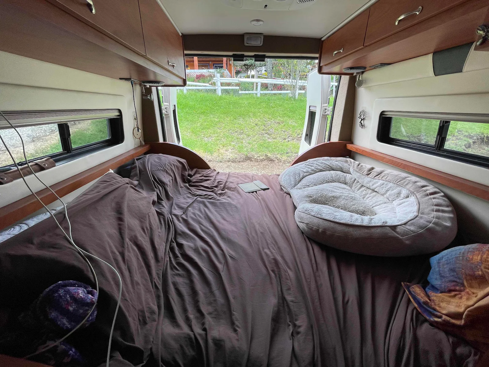 Layne wanted a bed that converts to a couch but we never do convert it so this week we will simplify our under bed storage by replacing it with a fixed bed frame courtesy of an RV carpenter we came across here in Colombia. It’s a shame as Custom Coach struggled to create the conversion in the first place but it will be better for us now.