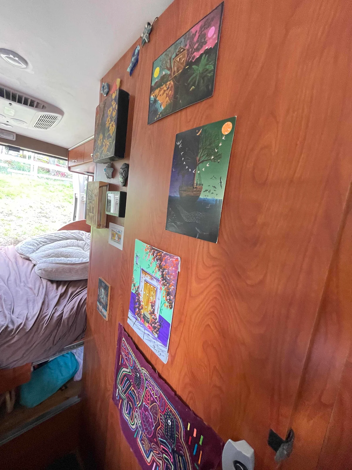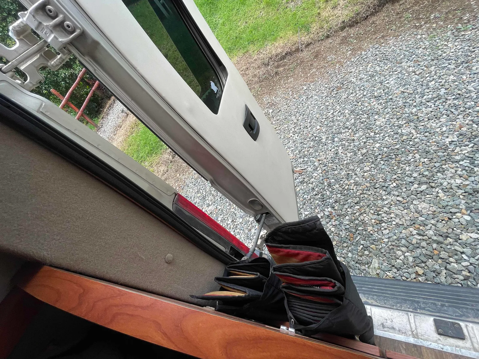 At the back of the van we carry insulated magnetic window covers which we insert on hot or cold days to increase insulation and privacy.