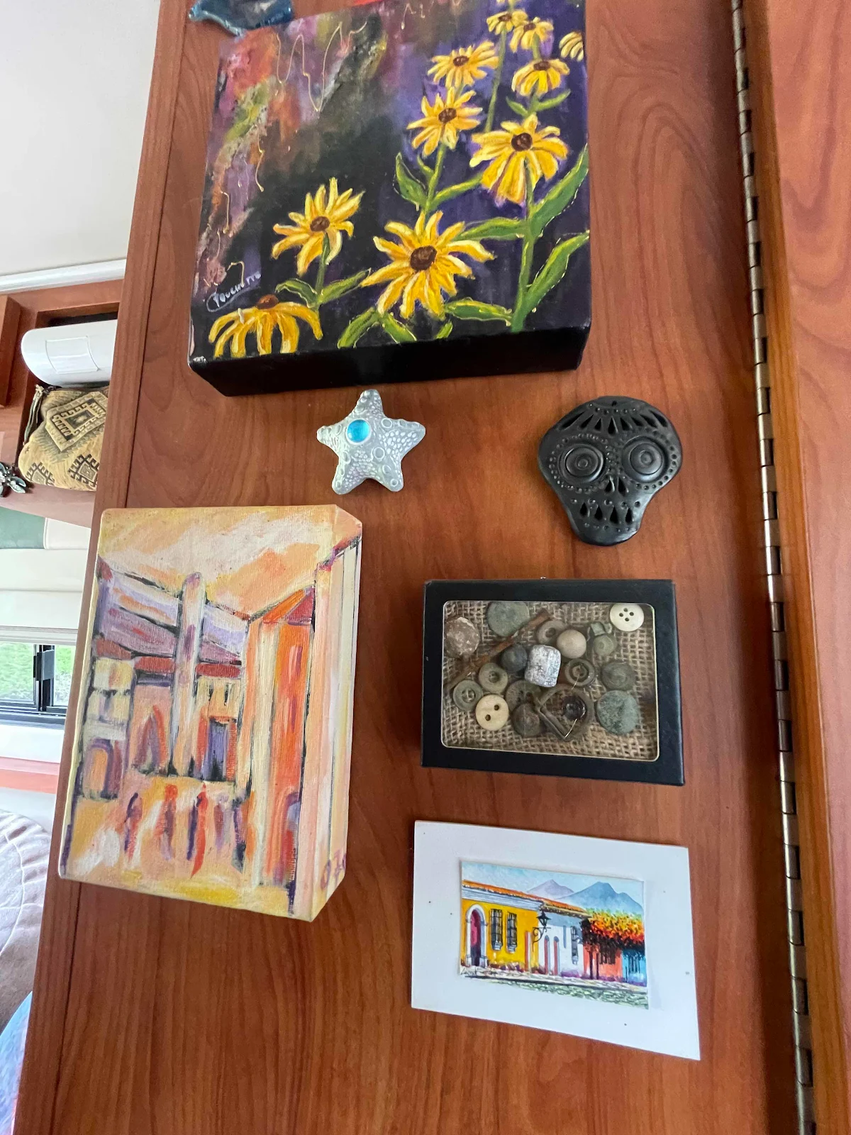 Layne likes to display artwork from