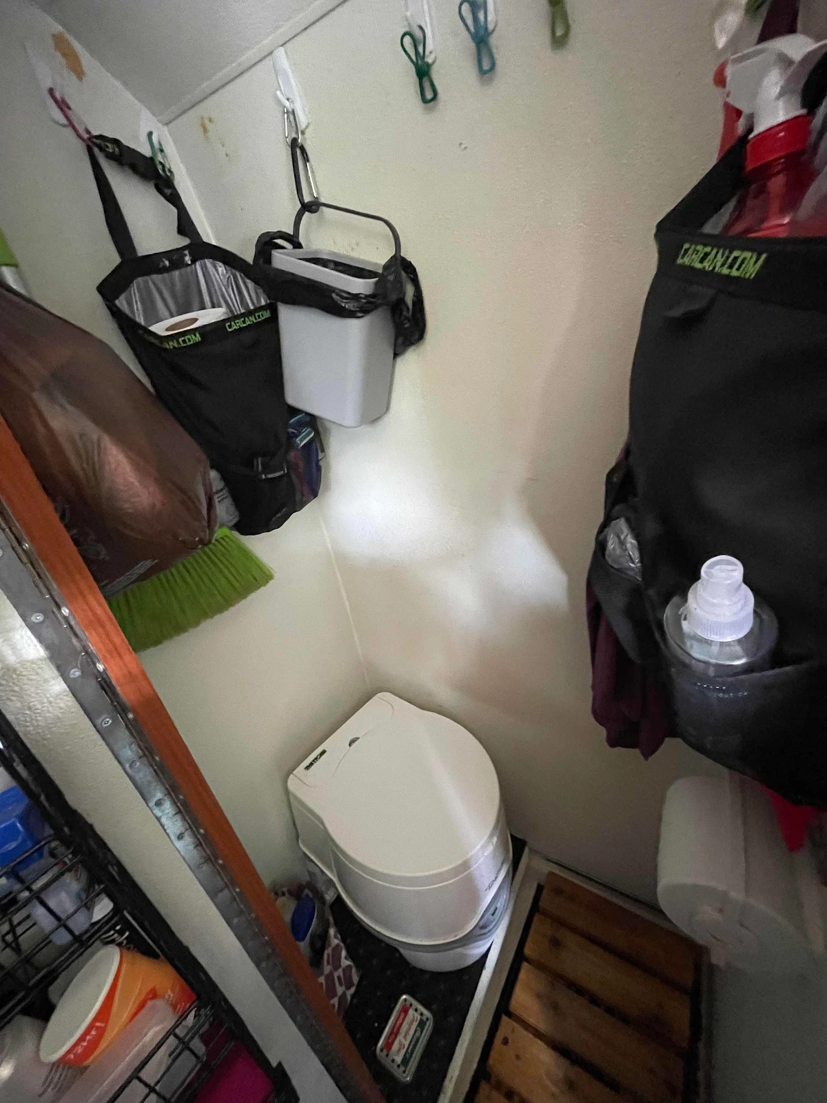 I chose a porta potty for our toilet as they are cheap and simple and I have no problem handling my own crap obviously. Composting toilets are popular nowadays but in Latin America it’s a lot easier to dispose of liquid than a bag full of non decomposed dry turds.