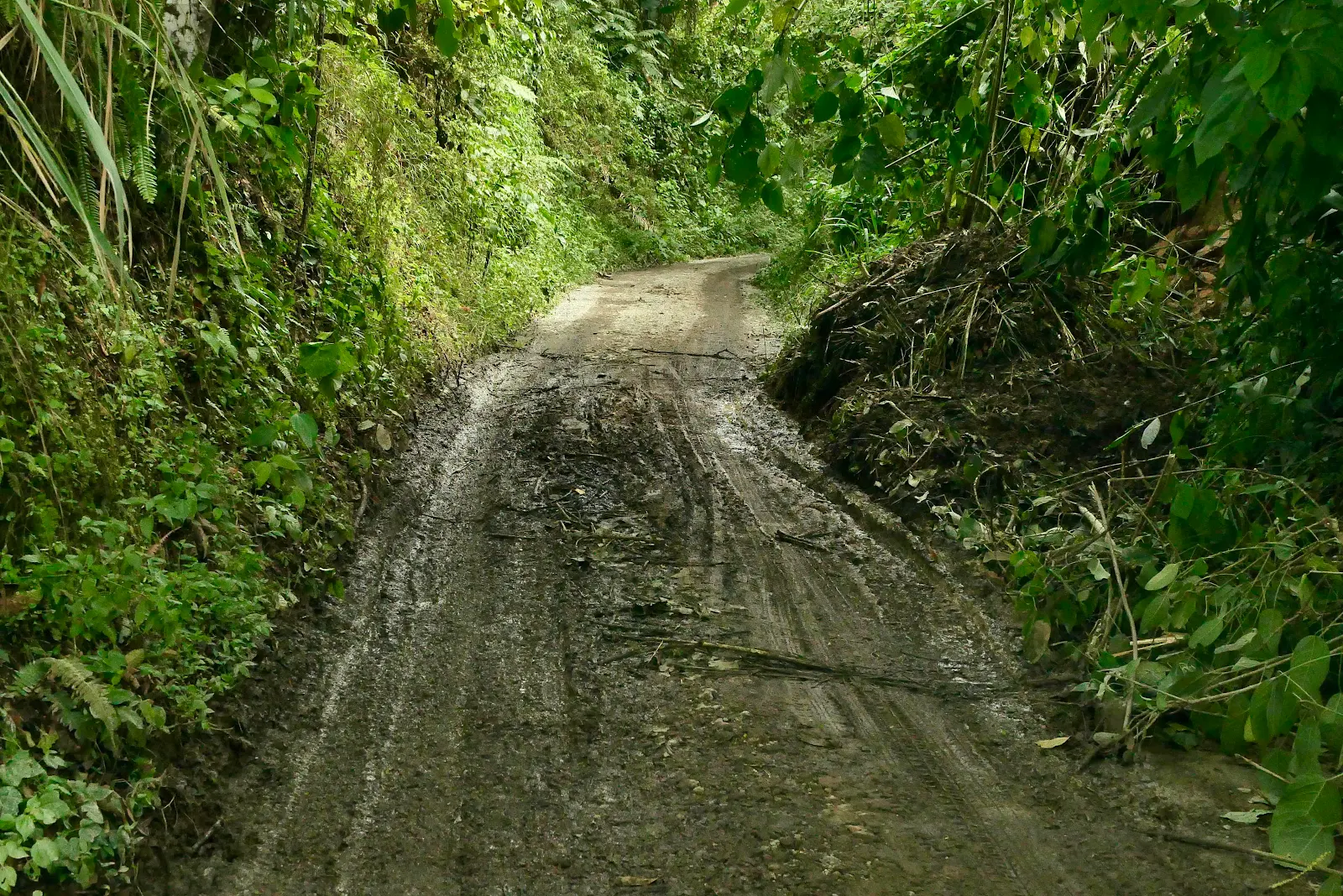 Fortunately for us the road is built on a solid base so mud holes were shallow and our tires found purchase.