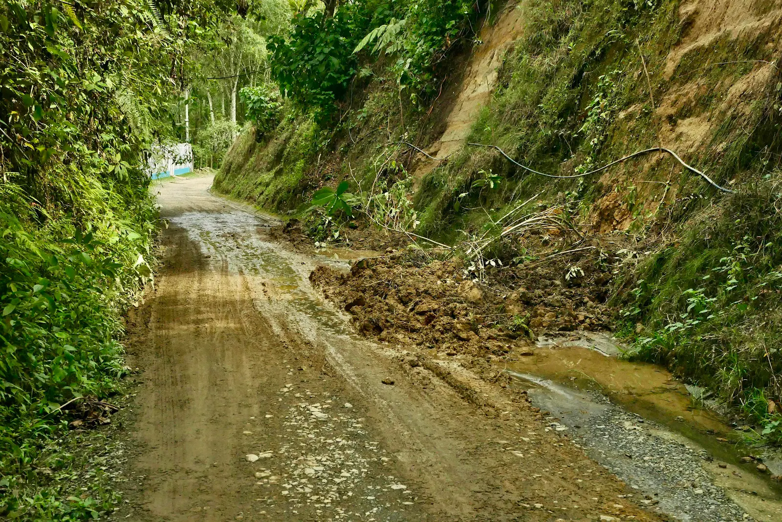 We got to the coffee farm, we had the tour and then the owner sat us down and said it was time to go. We stared at him as we planned to stay the night in this Garden of Eden. Don Carlos told us the road we had gone down was going to be closed Thursday for road work and the road we would have to take out of there was our only chance, but…if it rained we might get caught by a fresh mud slide like the two that closed the road earlier in the week. Indeed we came across the slides on our drive to Armenia.