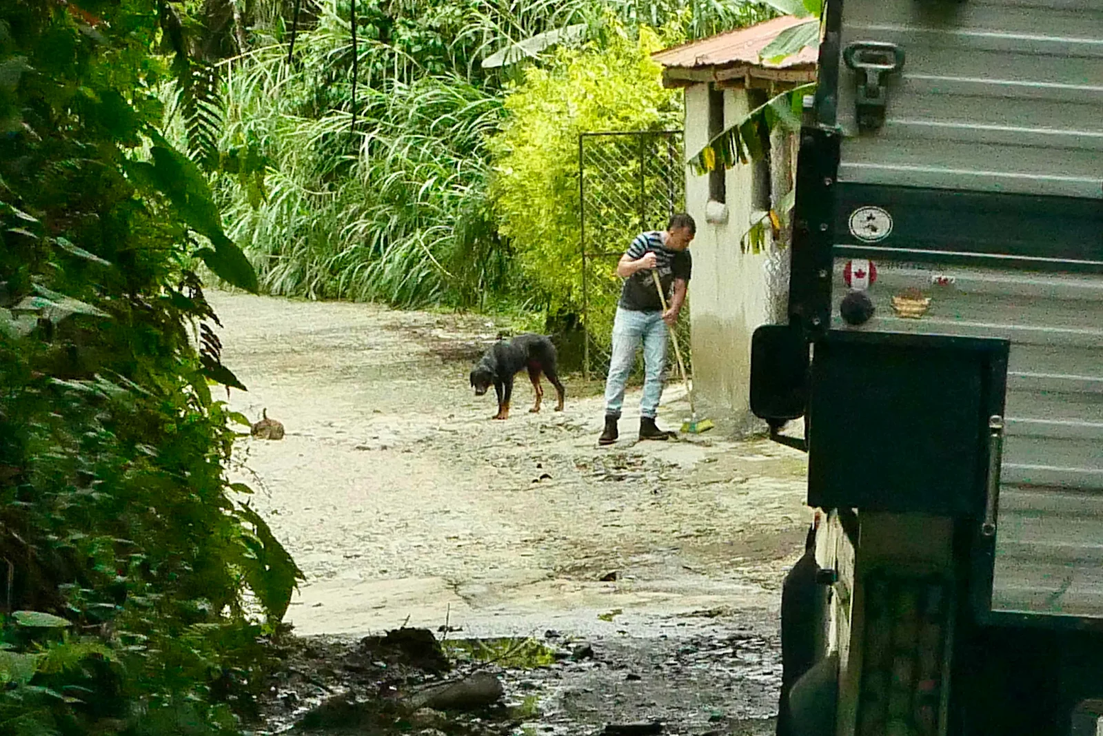 Check out this guy with a broom. It’s a national obsession in Colombia, keeping your sidewalk clean, even where there is no sidewalk.