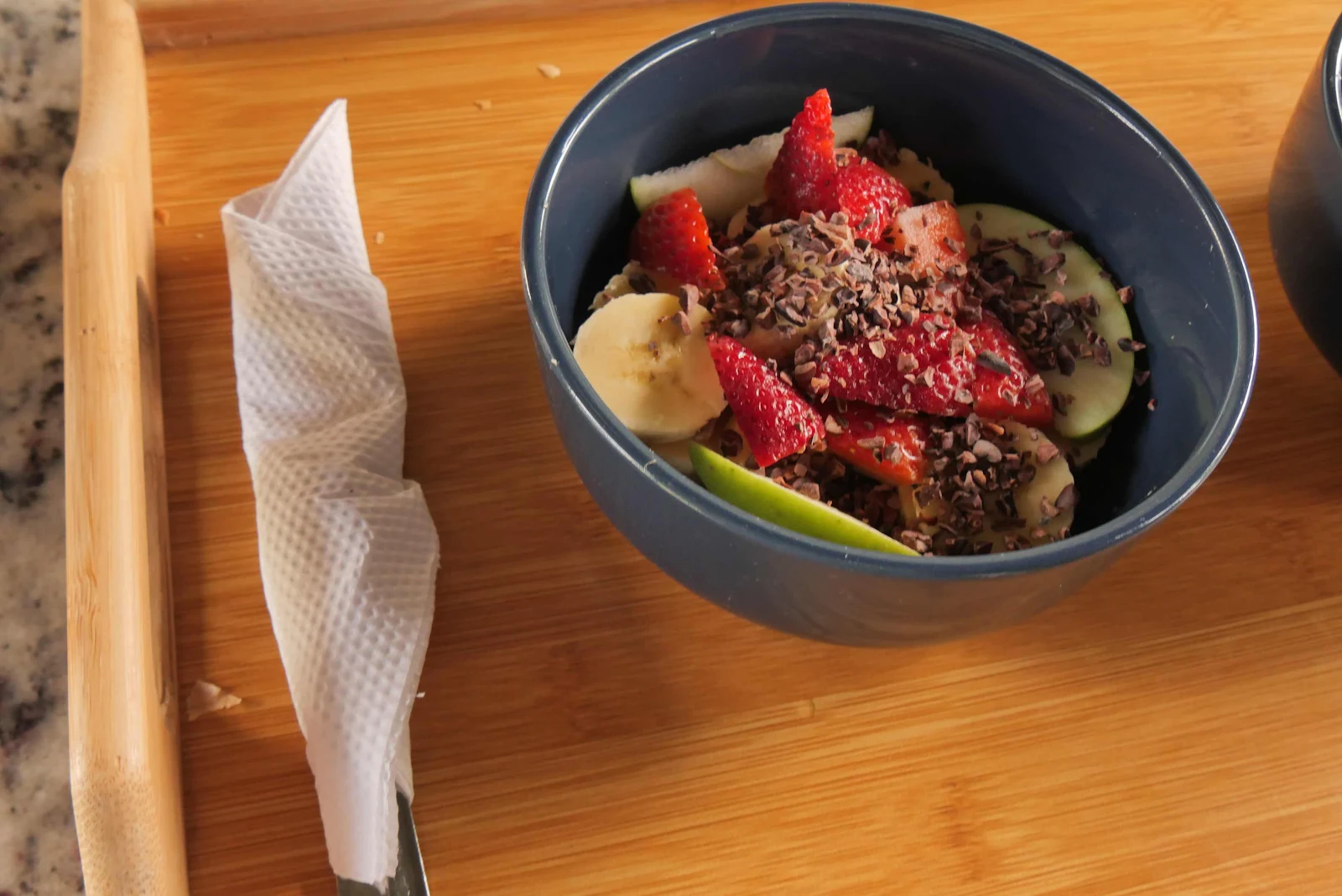 We got a sample of nibs on a fruit bowl. We bought two packets of nibs to eat on our oatmeal.