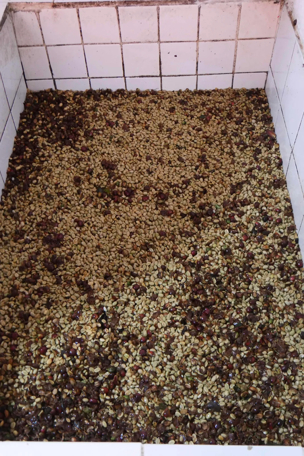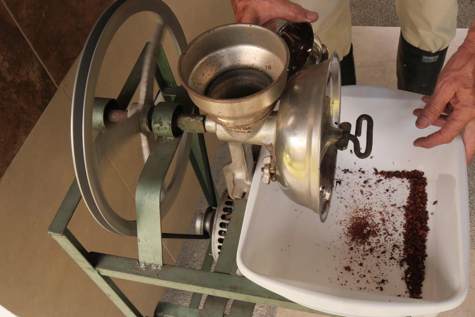 They ferment the beans and clean them with an electric centrifuge. In the old days they ground them up by hand to clean the beans: