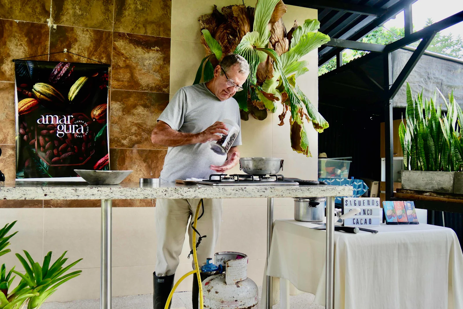 African chocolate has been grown for a mass production market apparently with cacao bushes on large plantations to supply the major modern European manufacturers with product. So I asked how do you win back your market for your small Colombian farms? I asked. The answer is I suppose obvious.