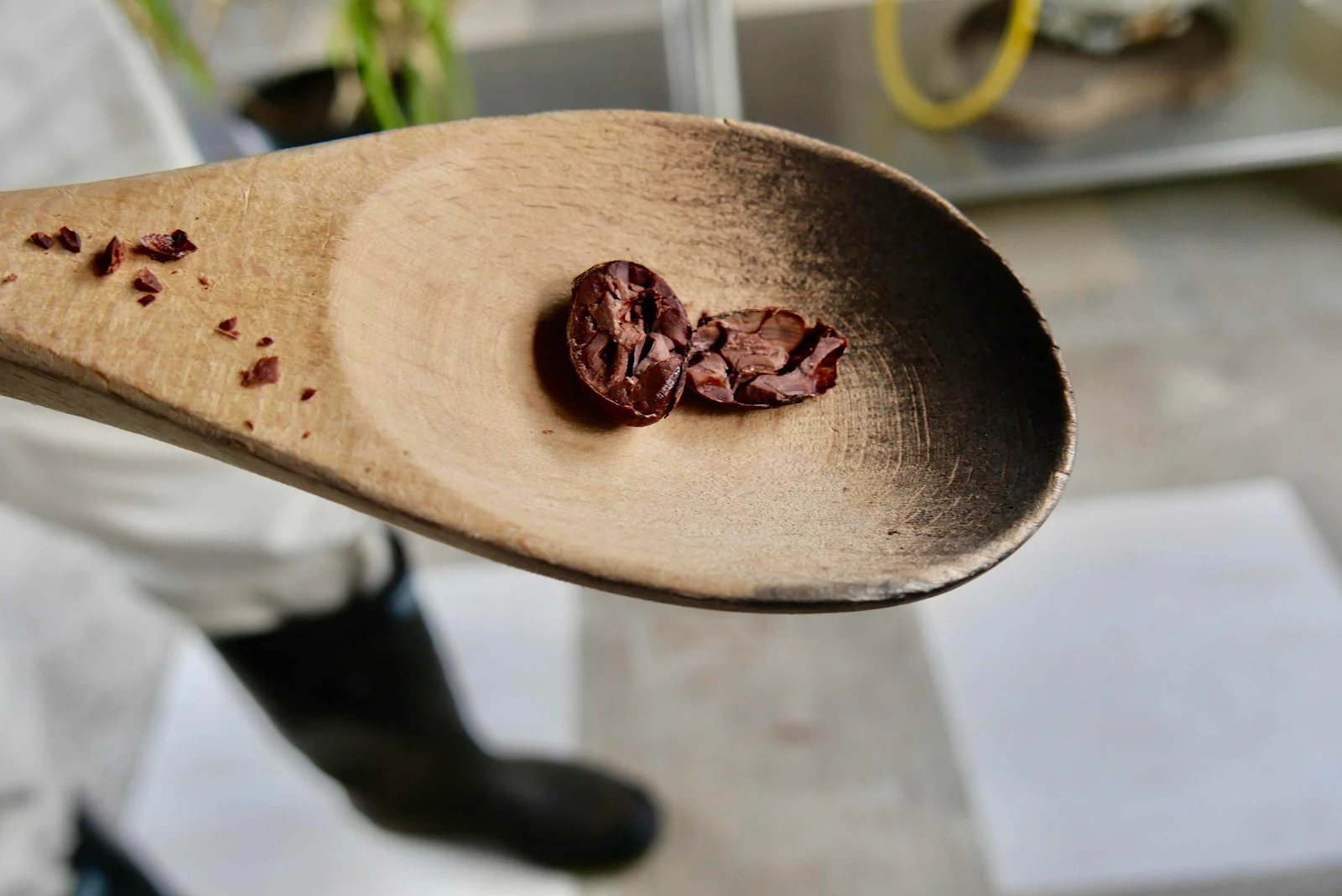They are put in boxes to ferment at precise temperatures and sifted by hand and inspected for proper color and quality. This is not mass production of chocolate by any means.