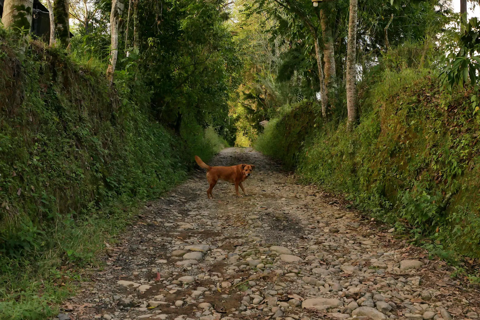 I was worried we would have trouble getting up the steep road out of the Steel Horse Campground outside Filandia. GANNET2 proved me a worry wort and Hugh the Canadian Land Rocer driver was entirely correct. We stormed up the mile and a half single track, the worst parts cemented, without a problem or a hesitation. GANNET2 shod with new gnarly all terrain KO2 tires roared up the hill in first gear faster than I could take pictures of the wet road. It’s steeper than it looks in these pictures from when I went for a walk when the road was dry.