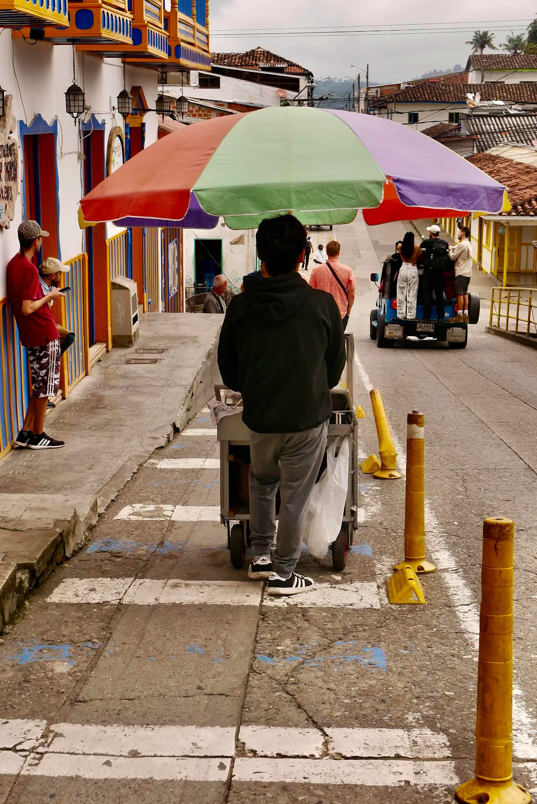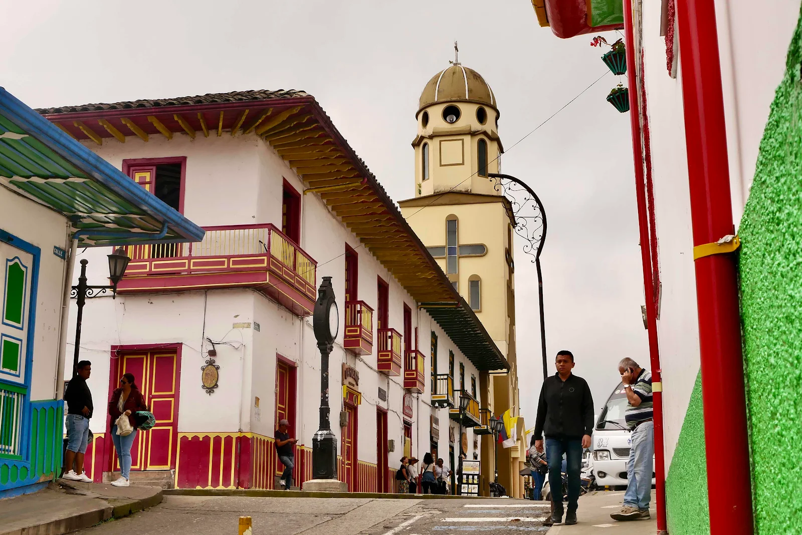 After we drove into and out of the Cocora Valley we found a parking spot around ten thirty in the morning on Tuesday in Salento’s main square. The church clock said as much.
