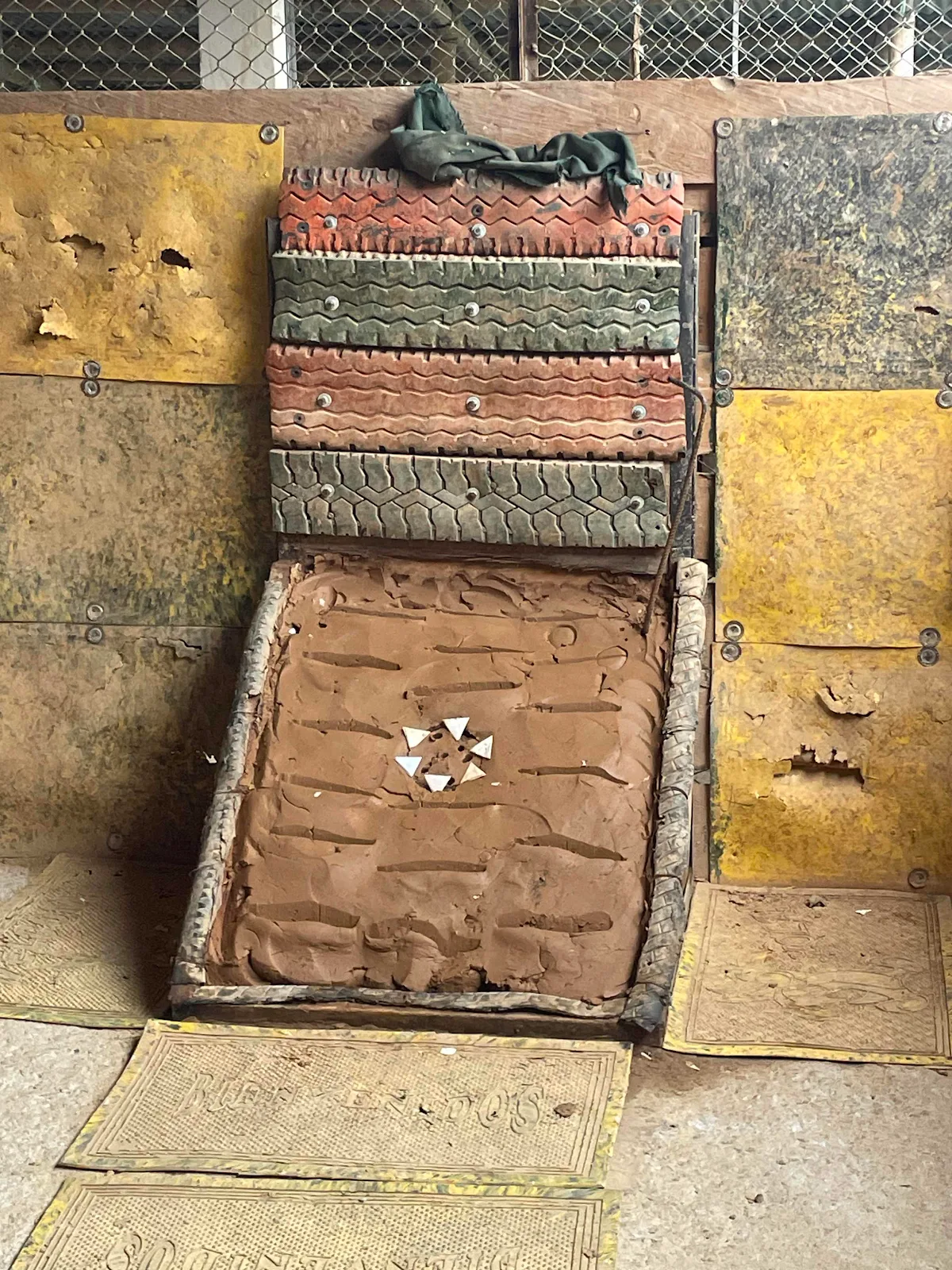 The rebar on the right is provided to help you pull the Tejo disc from the ever sucking clay. Gross.